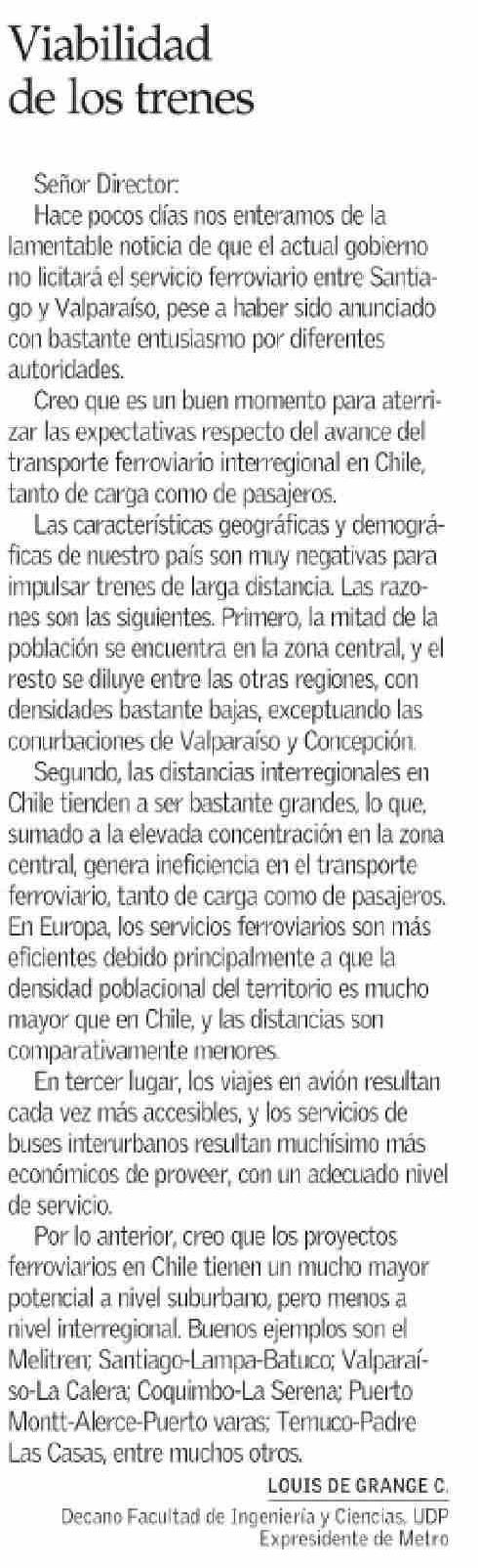 CARTAS: Viabilidad de los trenes 10-07-2025 El Mercurio |