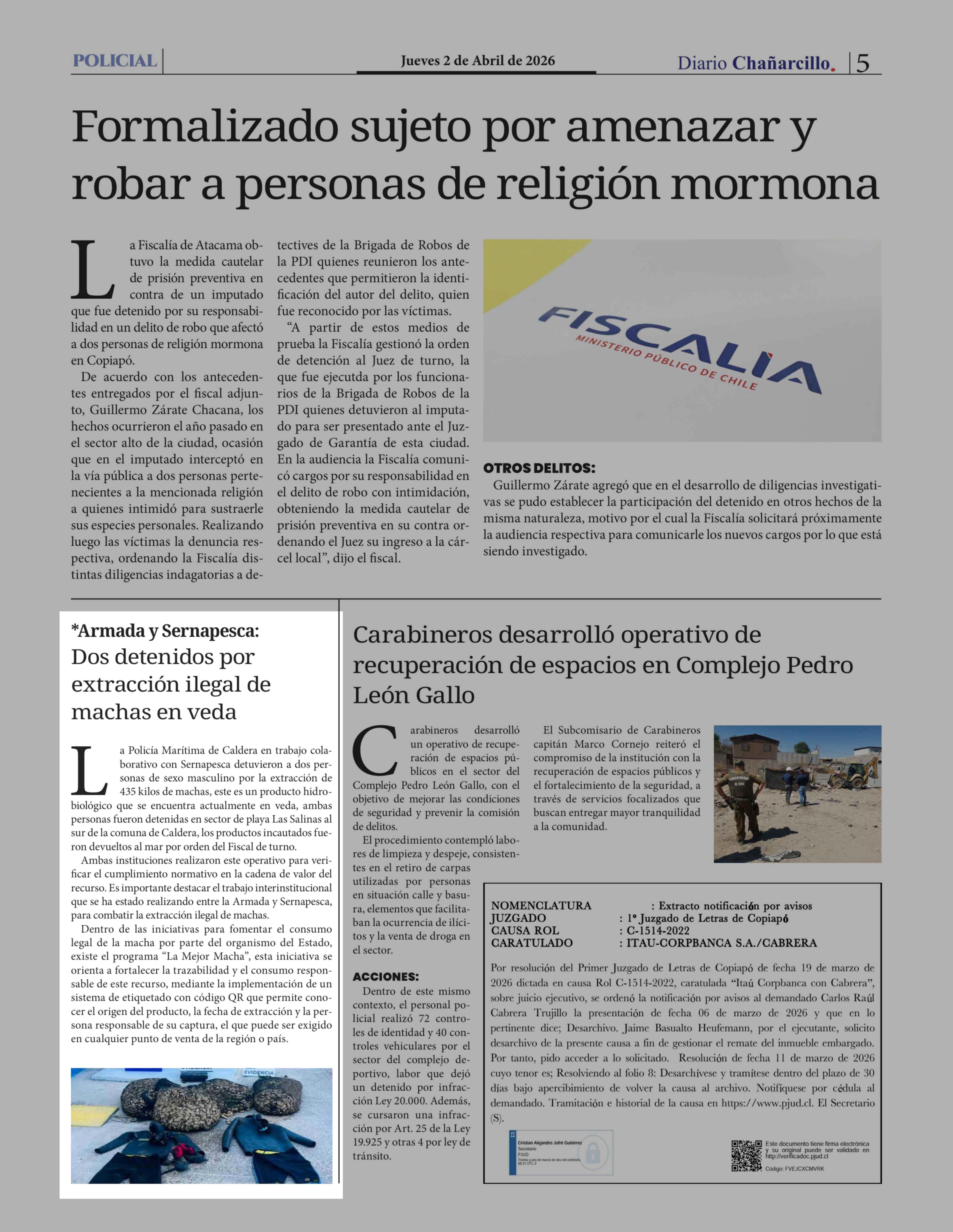 Fuente: Diario Chañarcillo (Diario Chanarcillo) Página(s): 5