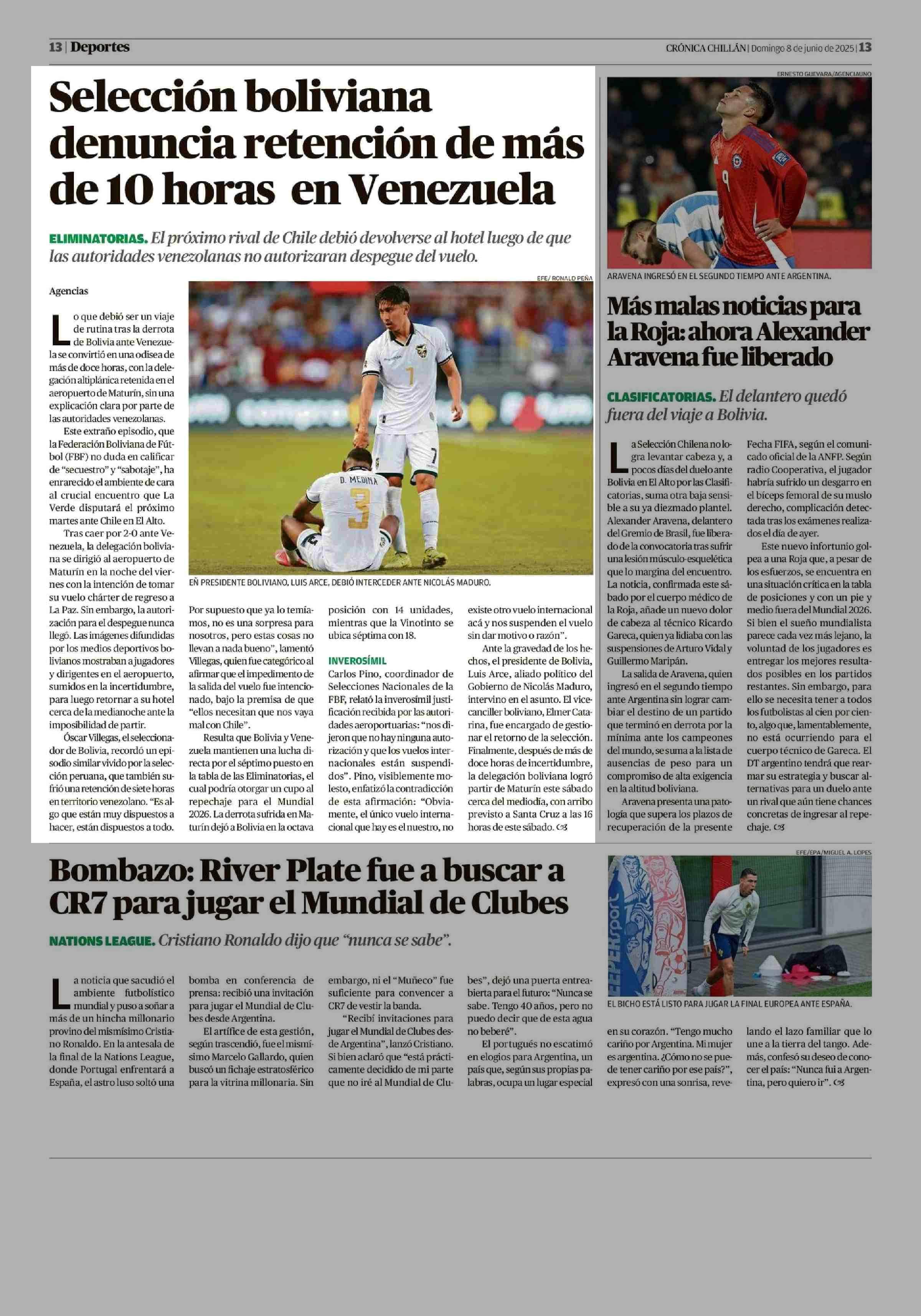 Selección boliviana denuncia retención de más de 10 horas en Venezuela 08-06-2025 Crónica de Chillán |