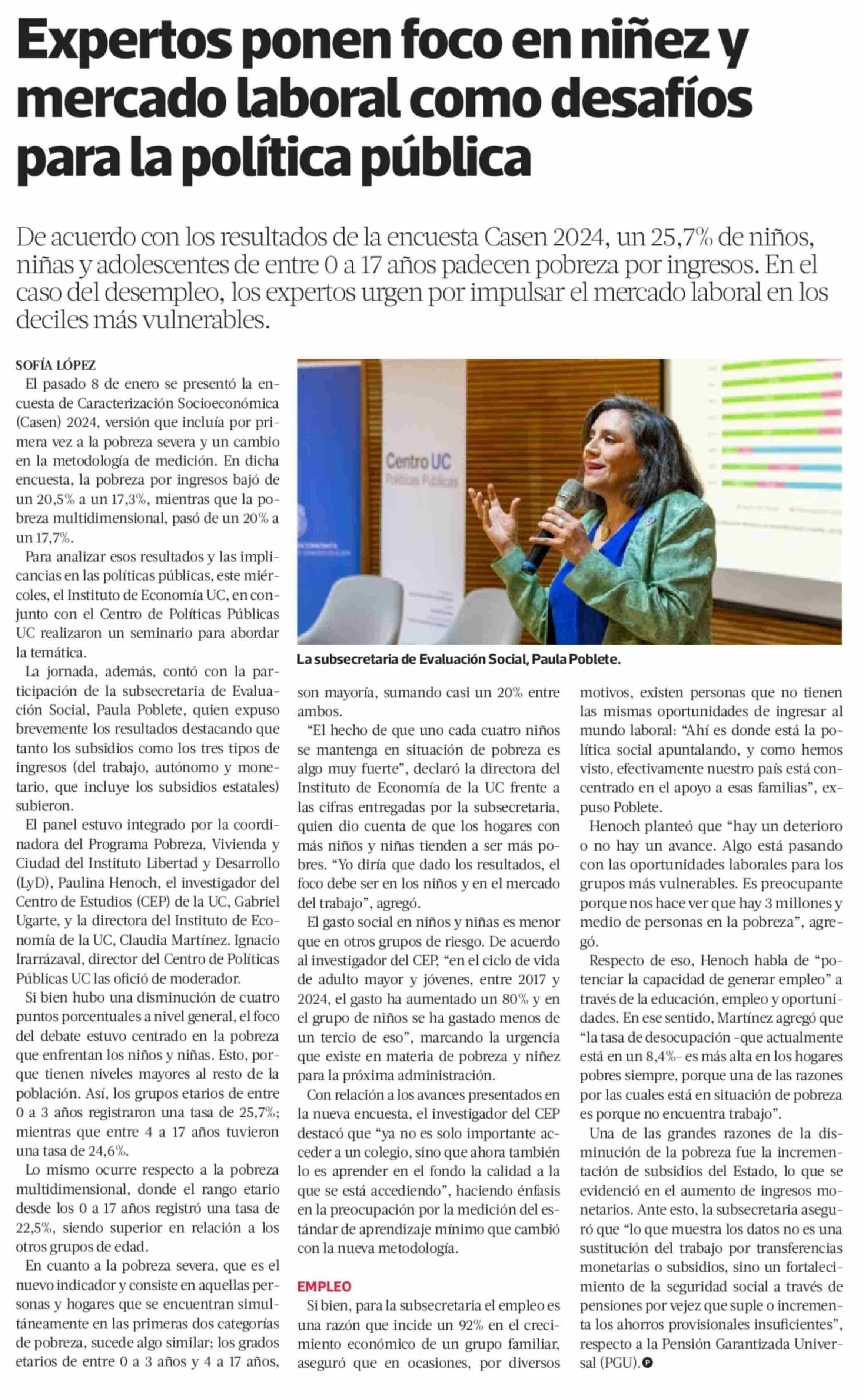 Expertos ponen foco en niñez y mercado laboral como desafíos para la política pública 15-01-2026 La Tercera |
