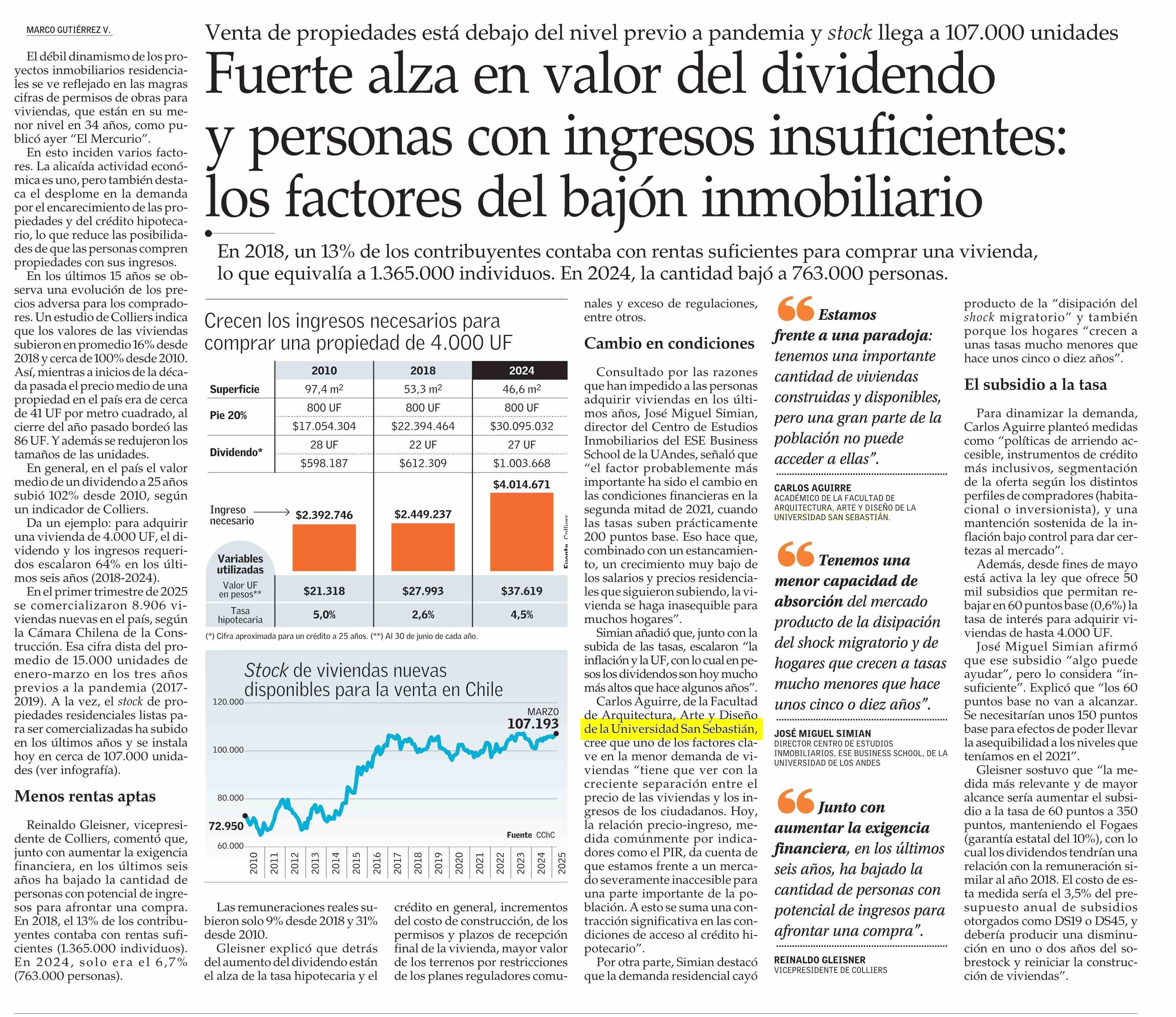 Fuerte alza en valor del dividendo y personas con ingresos insuficientes: los factores del bajón inmobiliario 10-06-2025 El Mercurio |