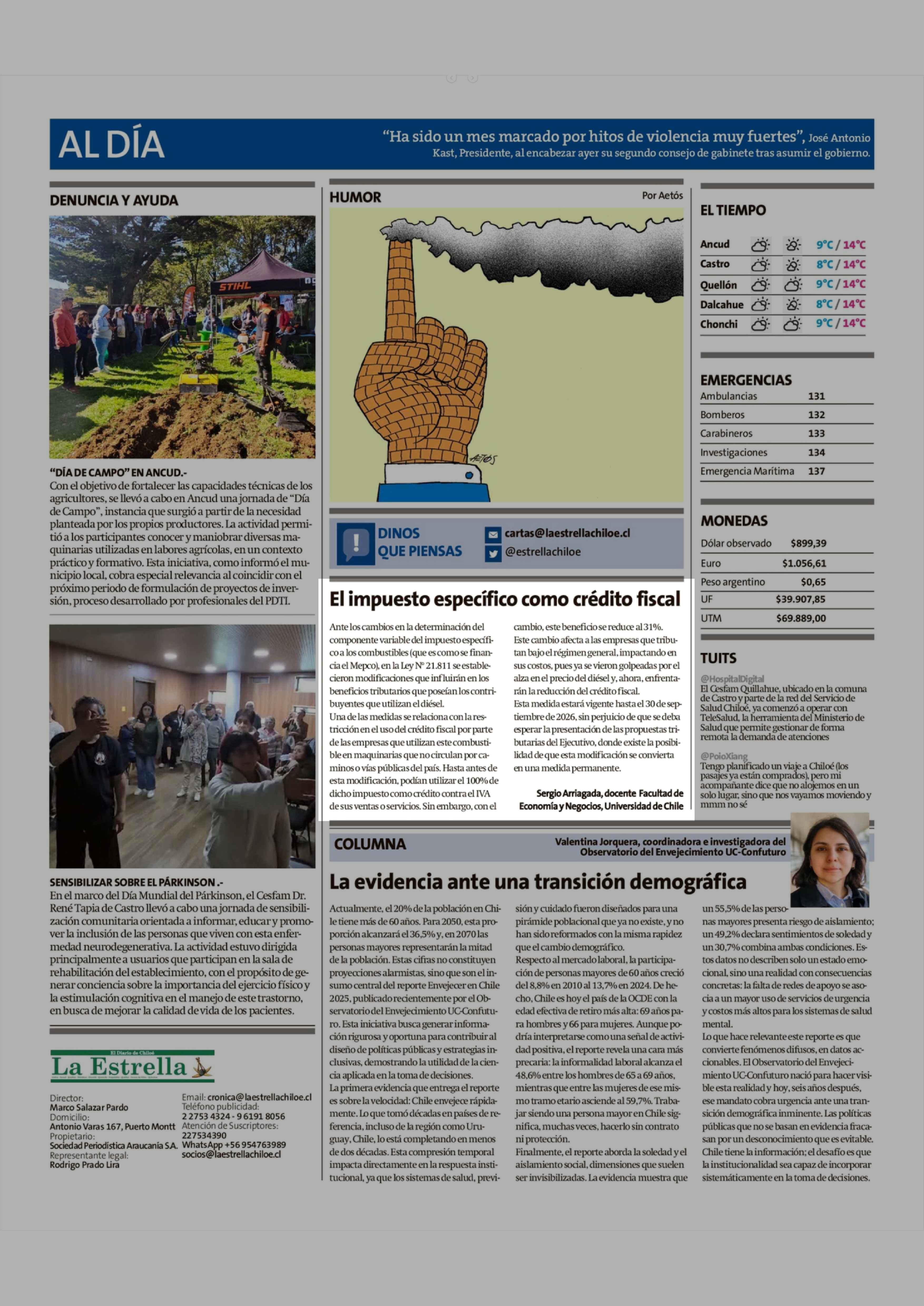Columnas de Opinión: El impuesto específico como crédito fiscal 14-04-2026 La Estrella de Chiloé |