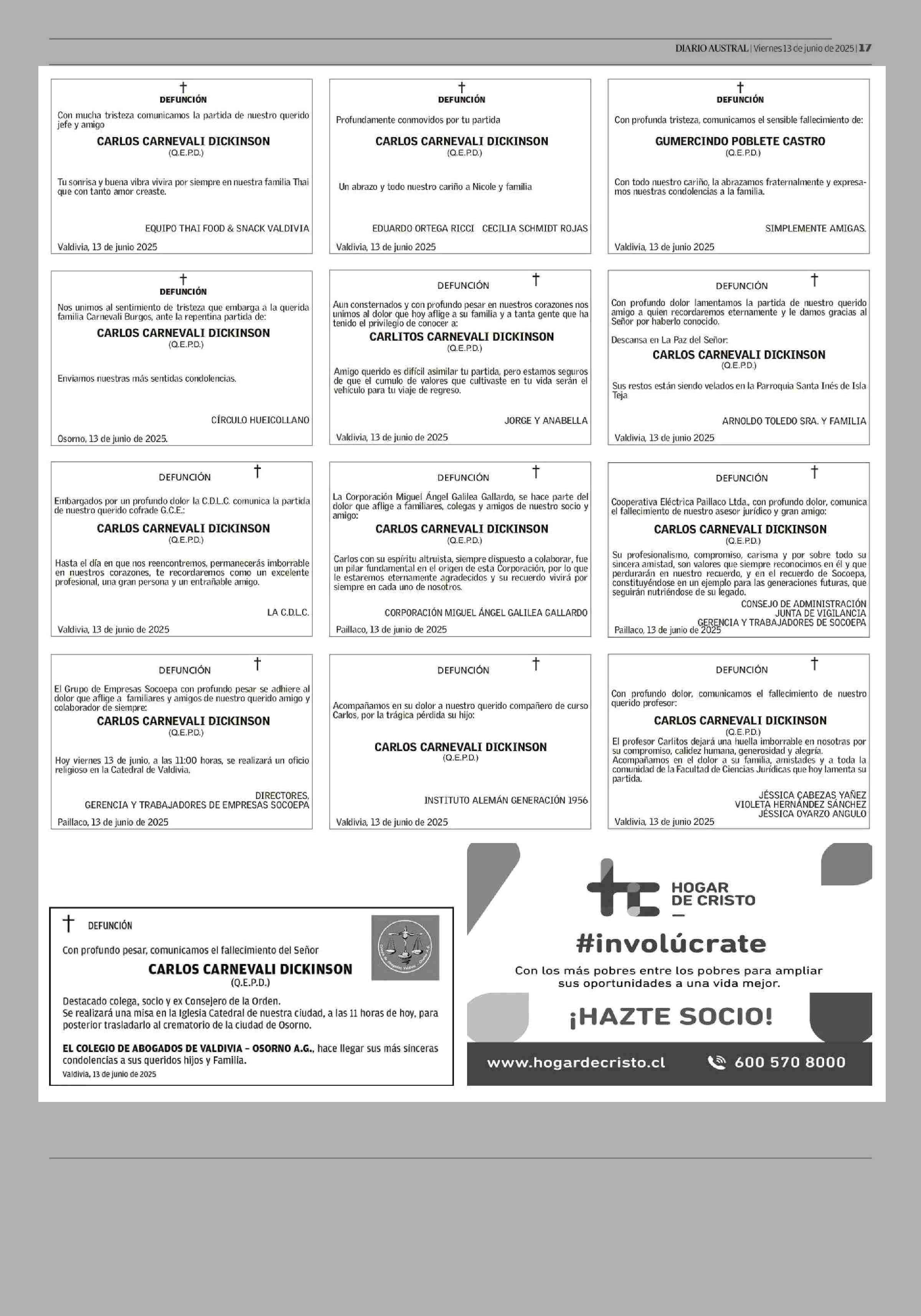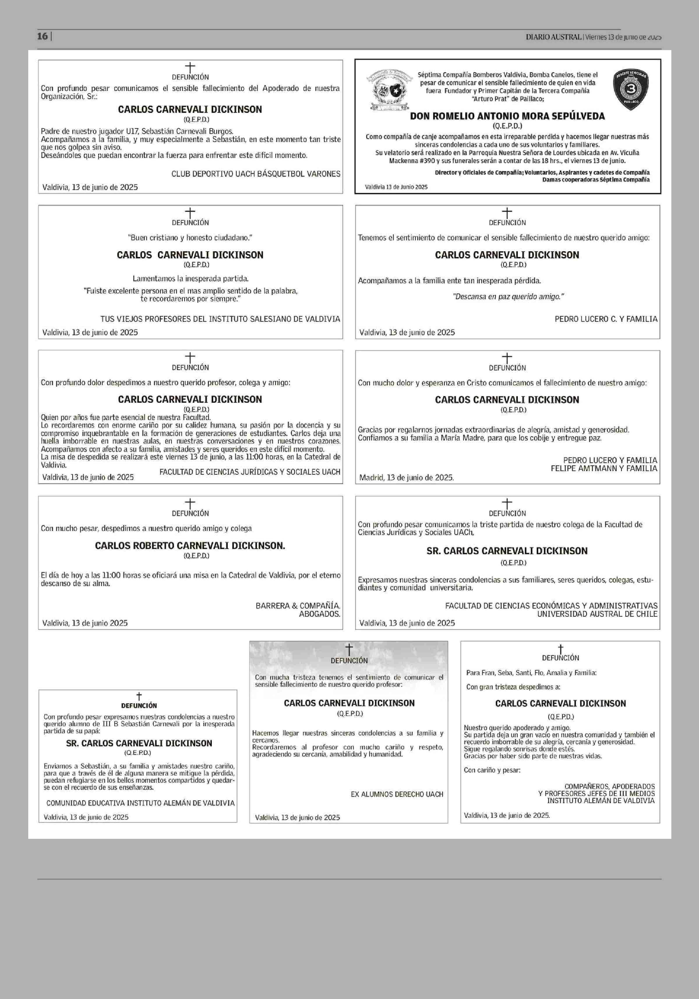 Obituario: OBITUARIO 13-06-2025 Diario Austral Región de Los Ríos |