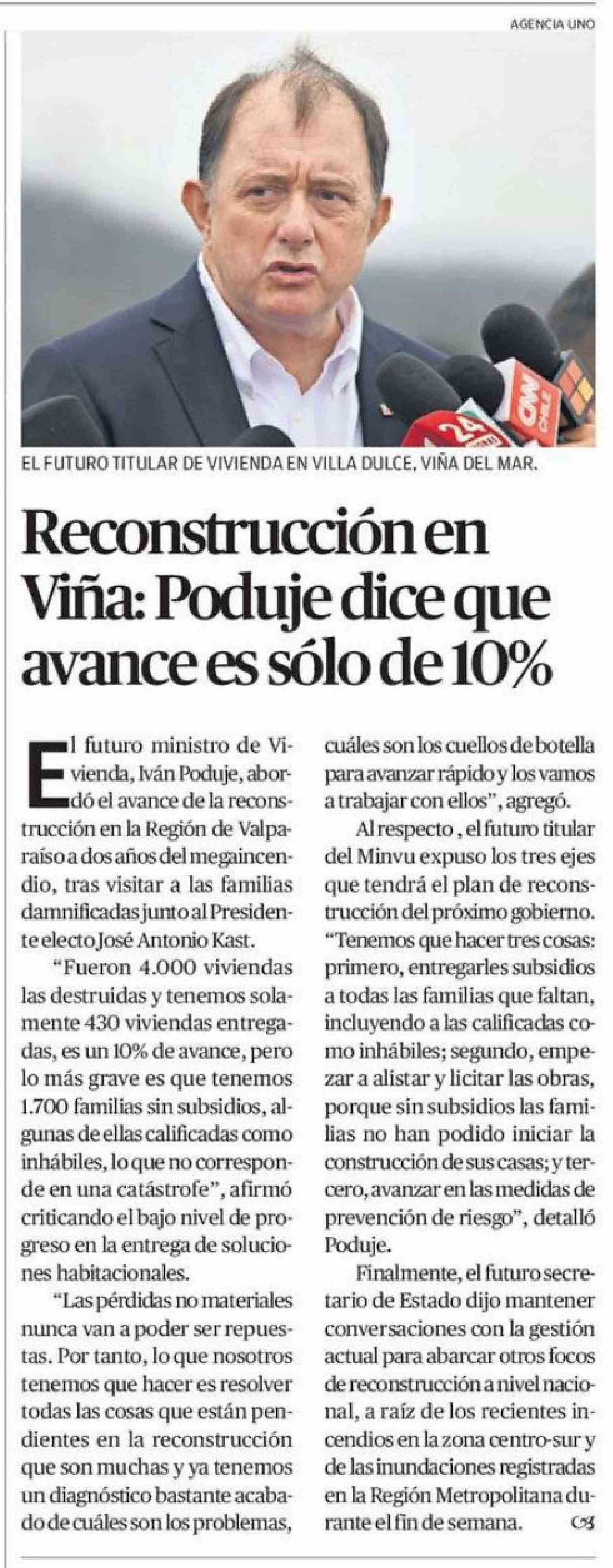 Título: Reconstrucción en Viña: Poduje dice que avance es sólo de 10%