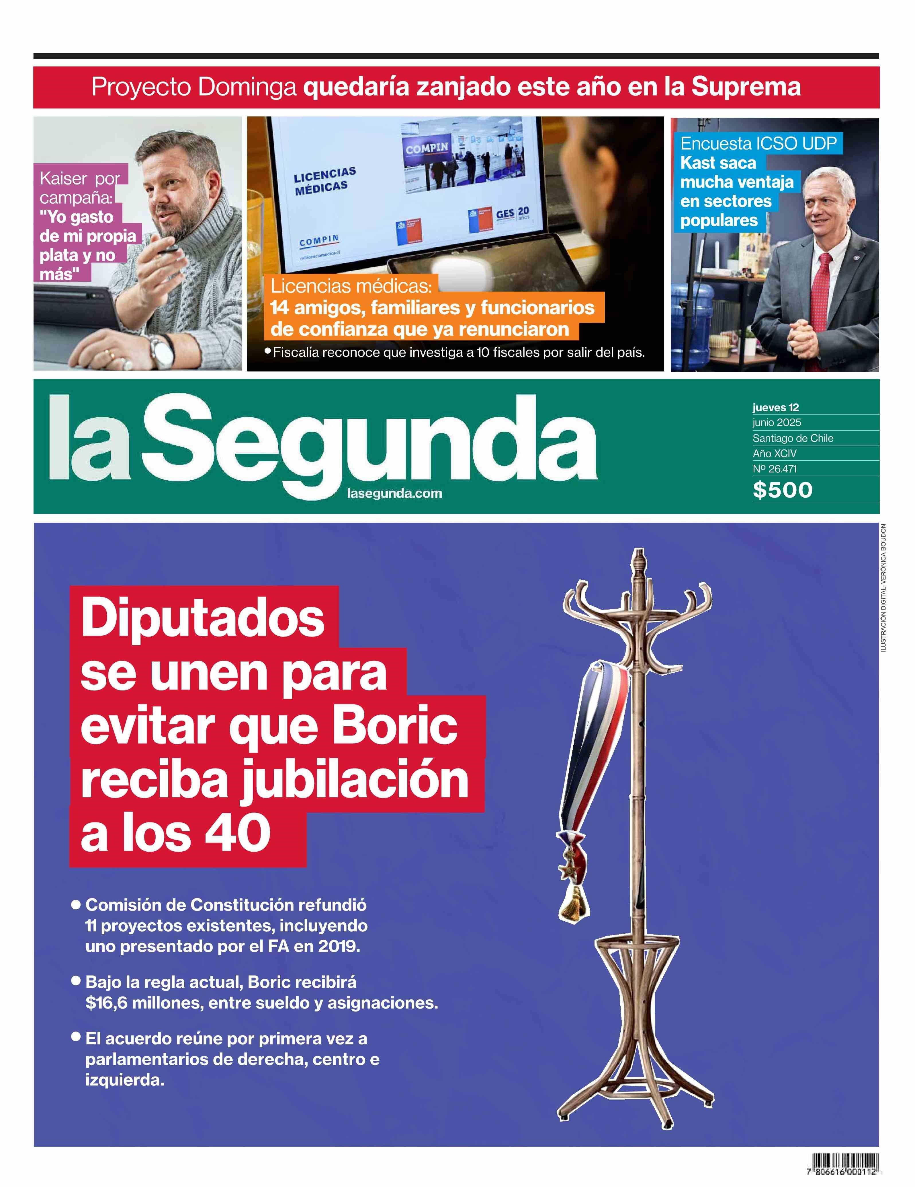 PORTADA LA SEGUNDA - CHILE 12-06-2025 La Segunda |