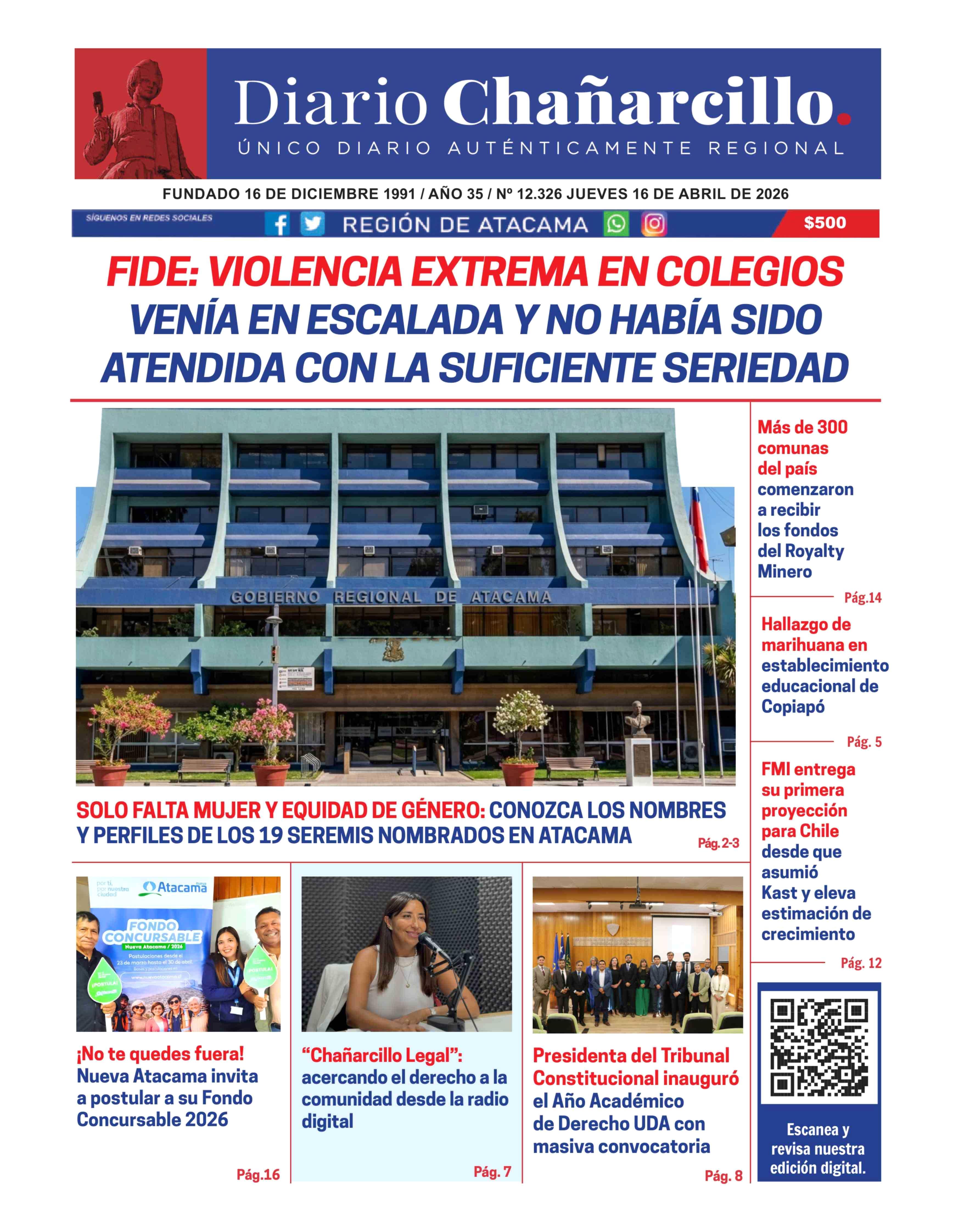 Fecha: 16-04-2026 Sector: Portada Región: Región de Atacama