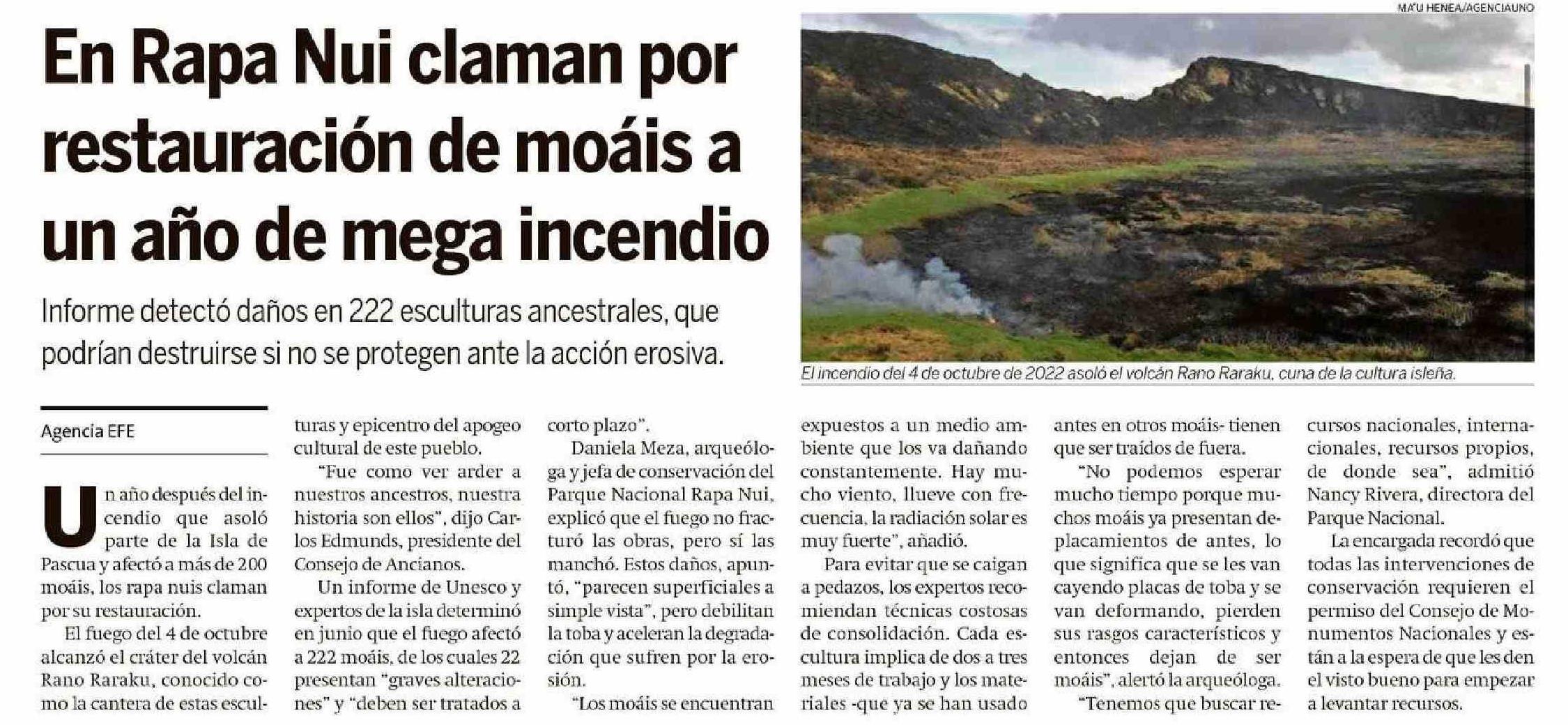 | Título: | En Rapa Nui claman por restauración de moáis a un año de mega incendio |
