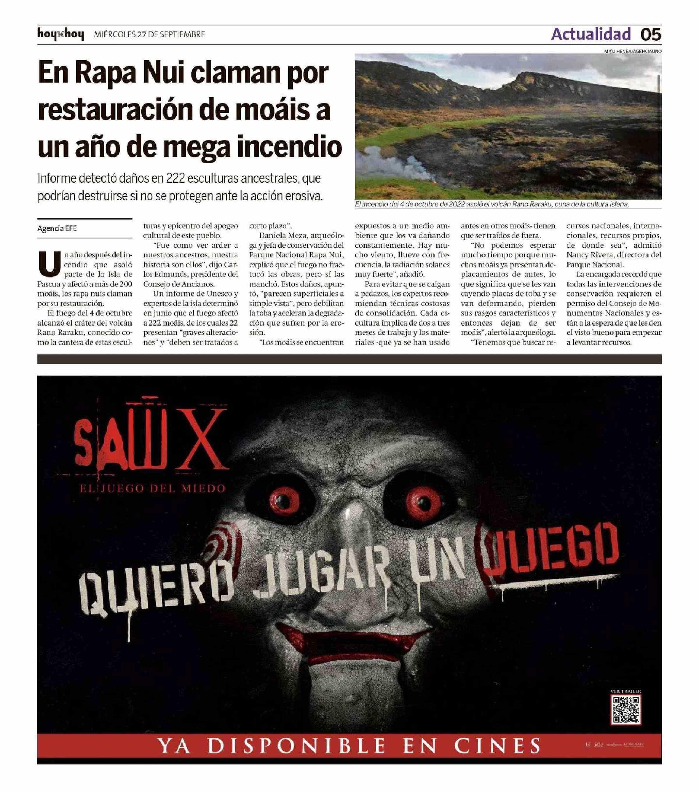 En Rapa Nui claman por restauración de moáis a un año de mega incendio 27-09-2023 Hoy x Hoy |