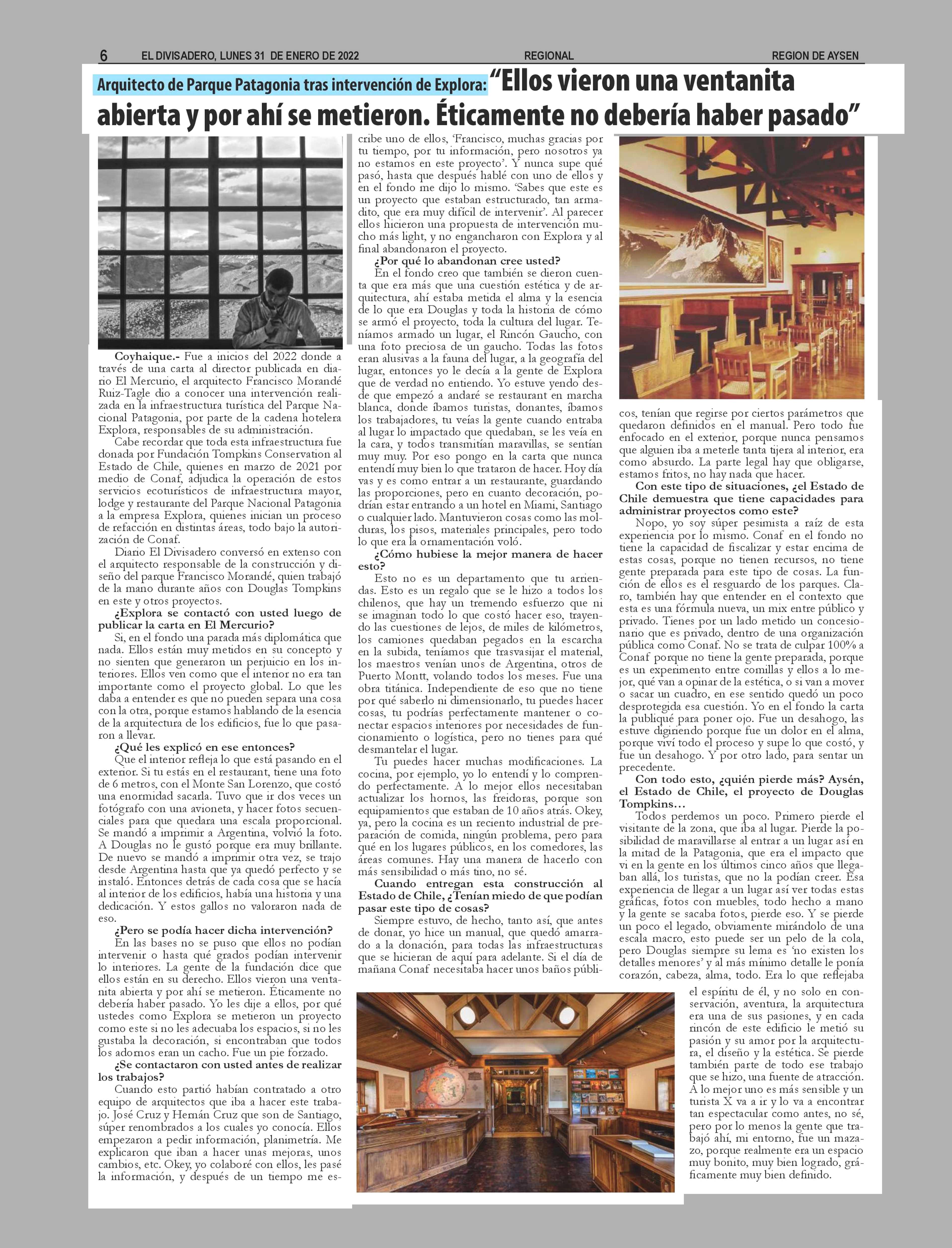 Arquitecto de Parque Patagonia tras intervención de Explora: “Ellos vieron una ventanita abierta y por ahí se metieron. Eticamente no debería haber pasado” 31-01-2022 El Divisadero |