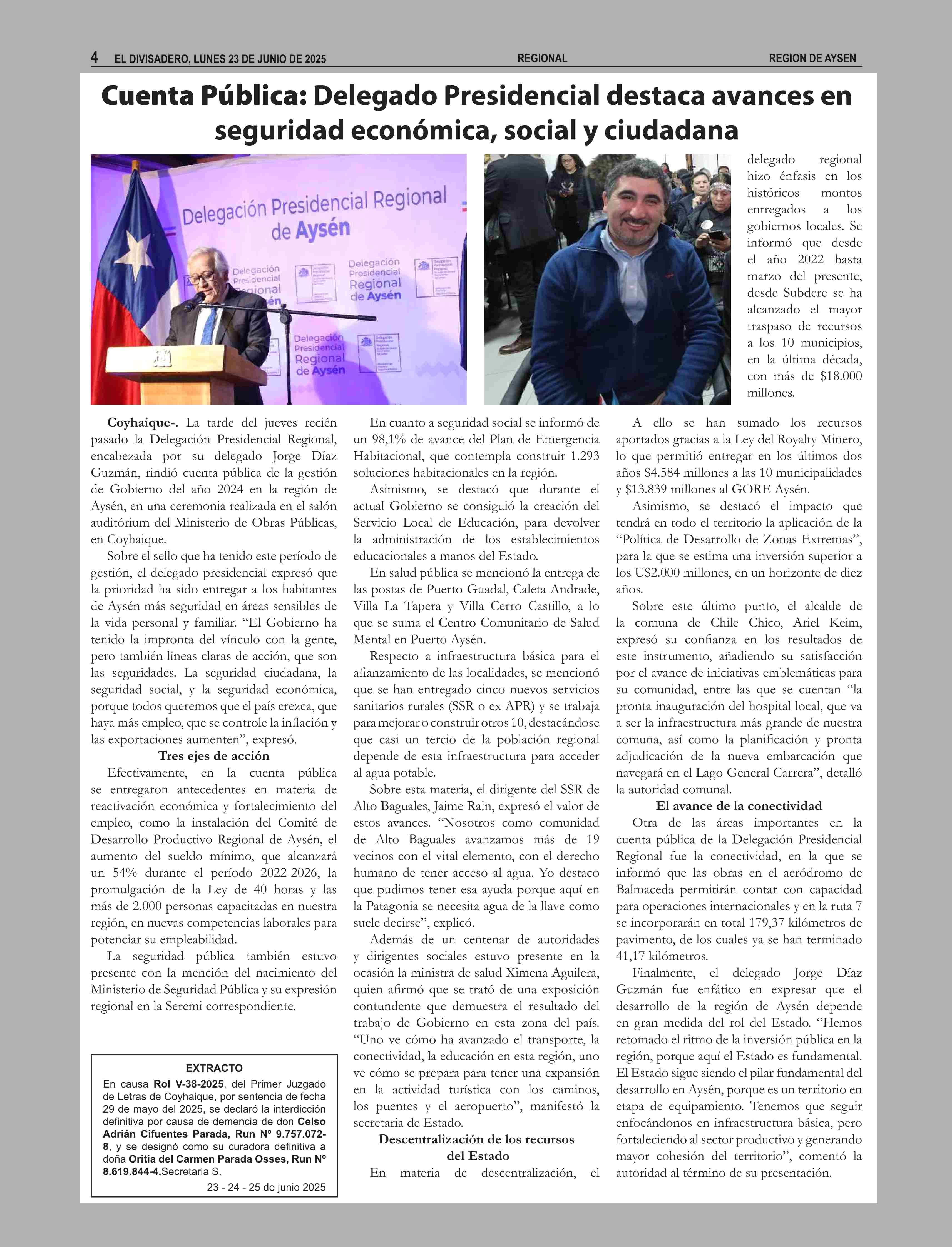 Cuenta Pública: Delegado Presidencial destaca avances en seguridad económica, social y ciudadana 23-06-2025 El Divisadero |