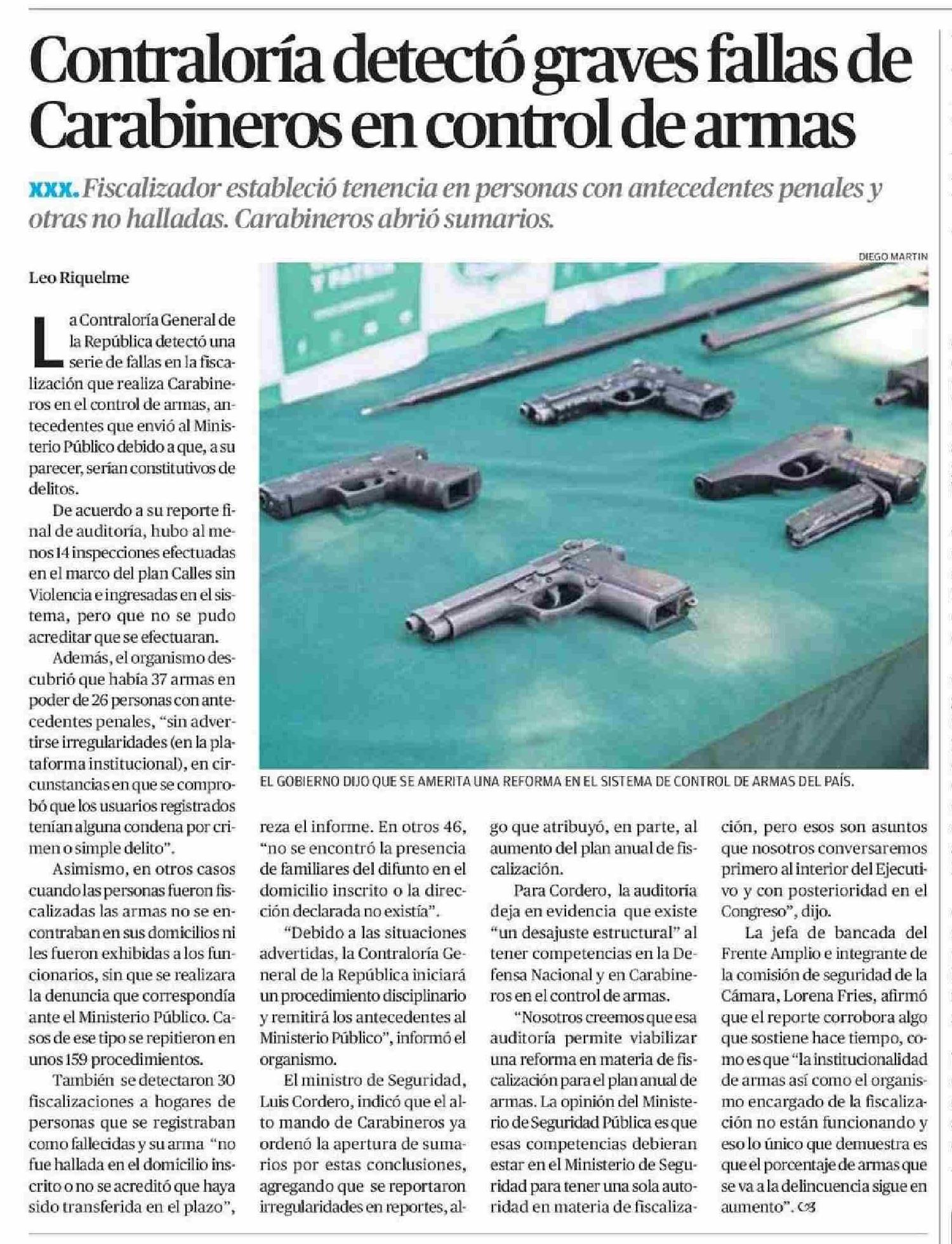 Título: Contraloría detectó graves fallas de Carabineros en control de armas