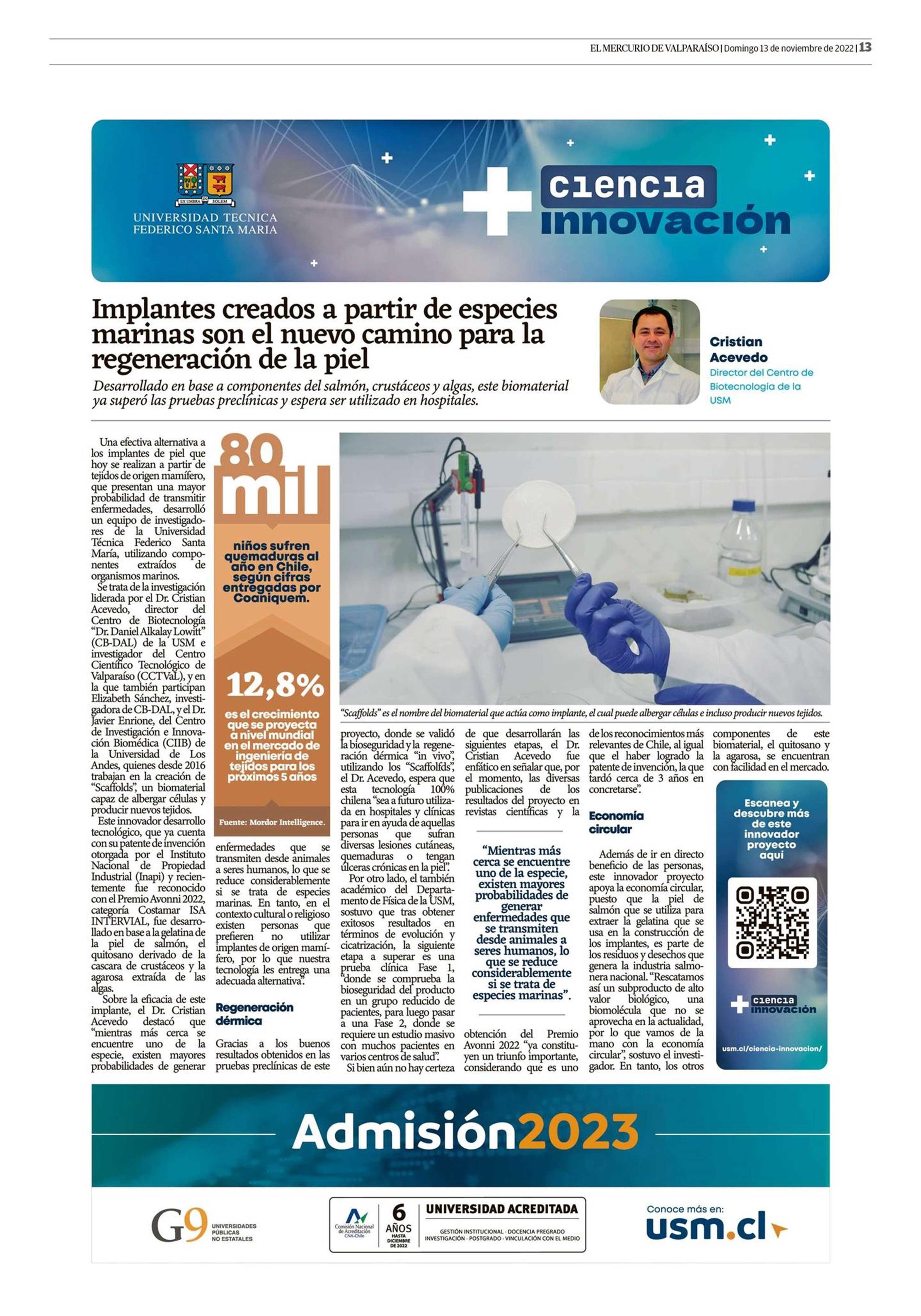 Título: Implantes creados a partir de especies marinas son el nuevo camino para la regeneración de la piel
