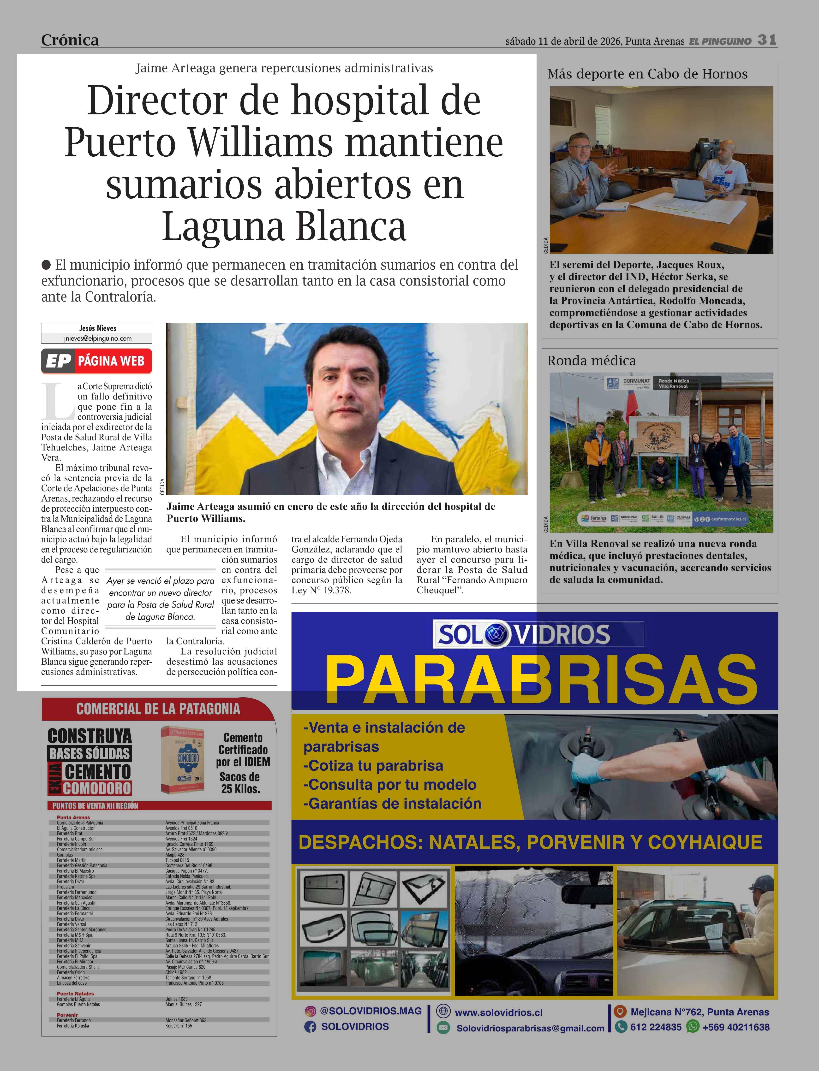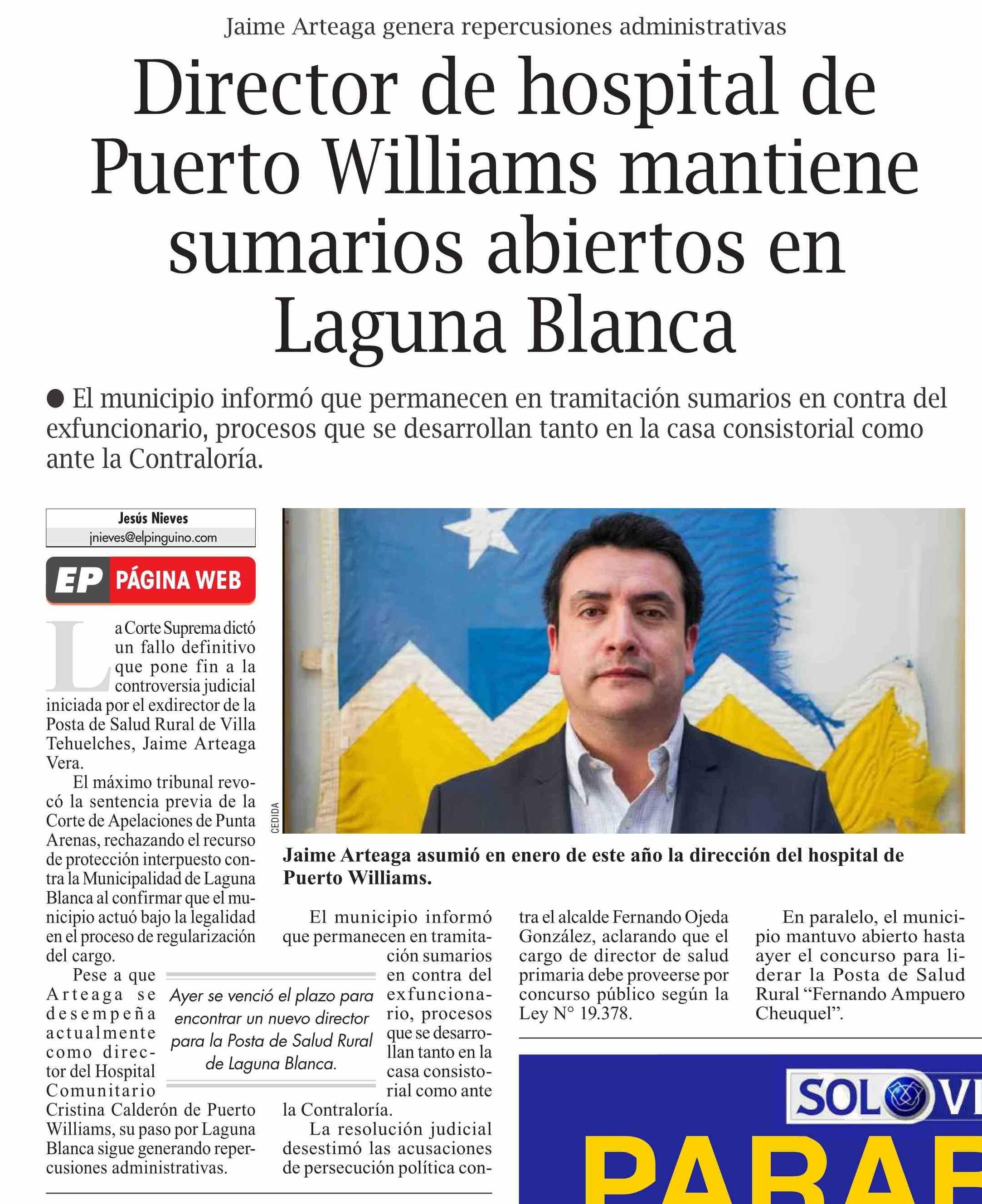 Título: Director de hospital de Puerto Williams mantiene sumarios abiertos en Laguna Blanca