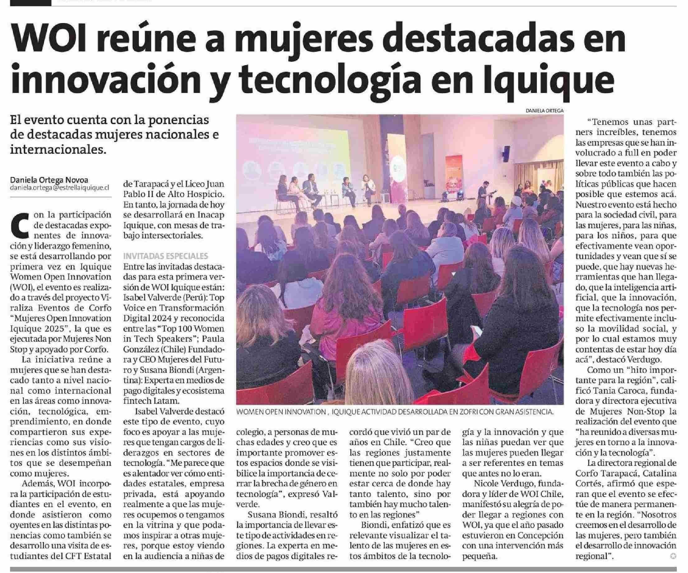 WOI reúne a mujeres destacadas en innovación y tecnología en lq uique 05-06-2025 La Estrella de Iquique |