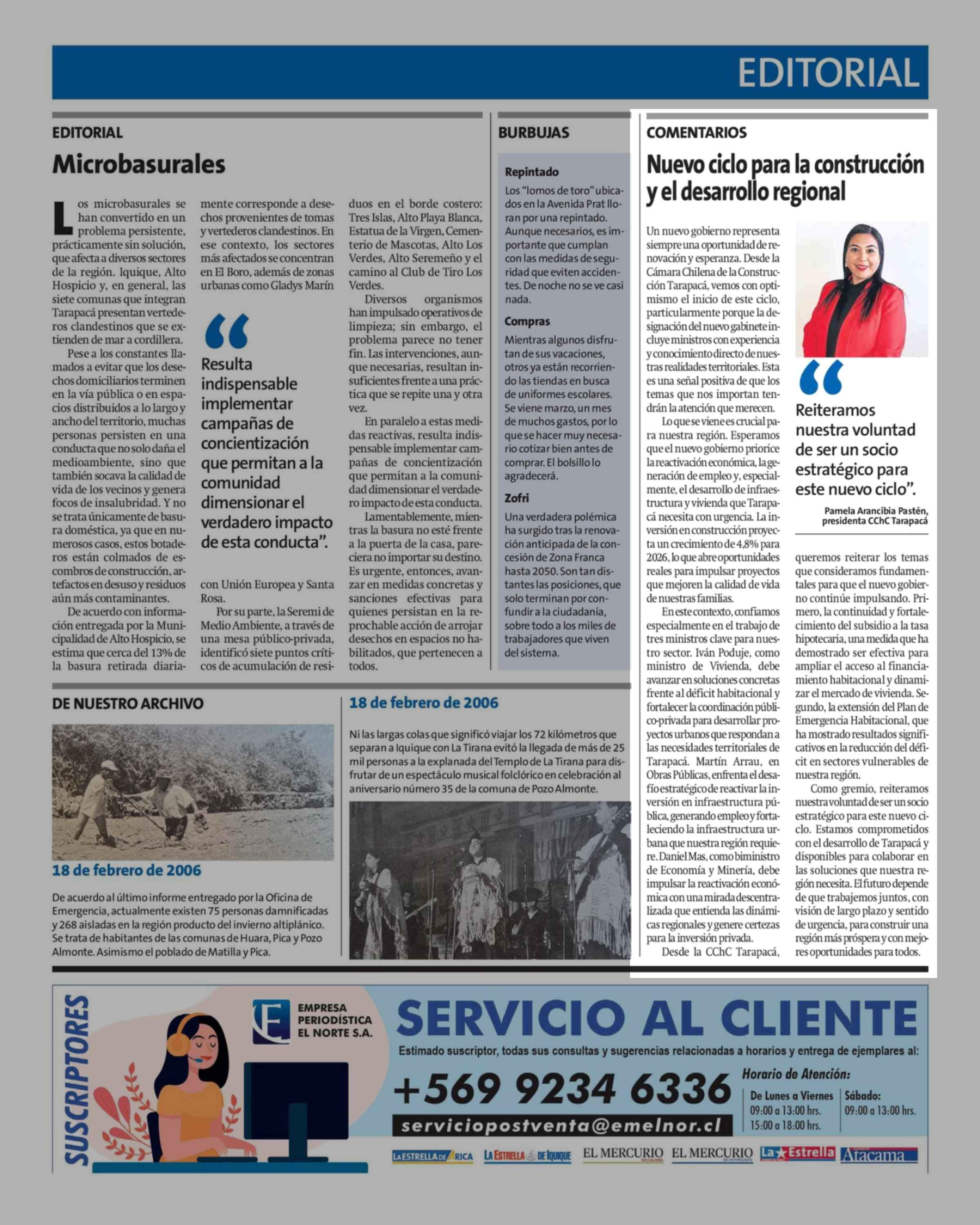 Nuevo ciclo para la construcción y el desarrollo regional 18-02-2026 La Estrella de Iquique |