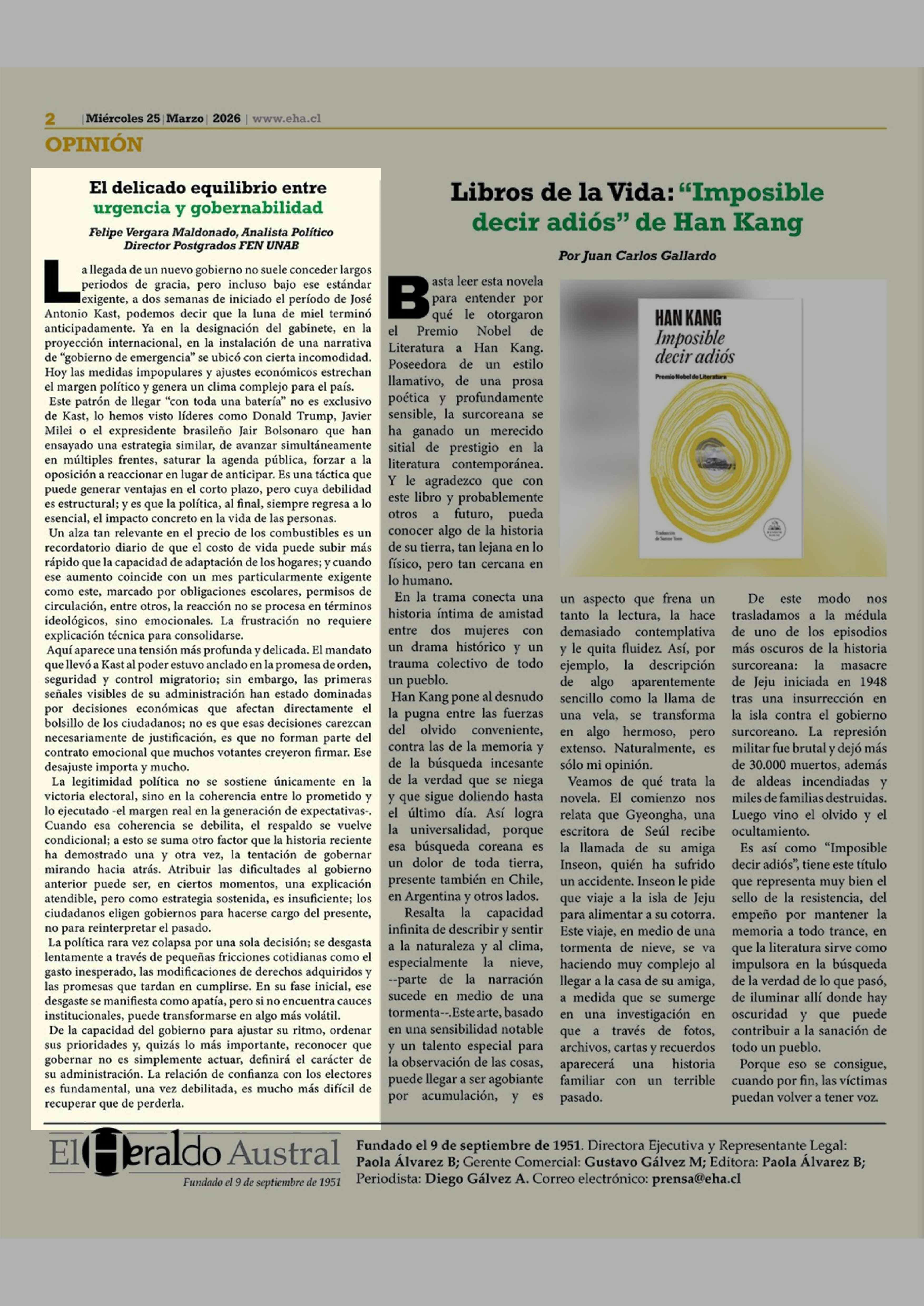 Fecha: 25-03-2026 Sector: Columnas de Opinión Región: Región de Los Lagos
