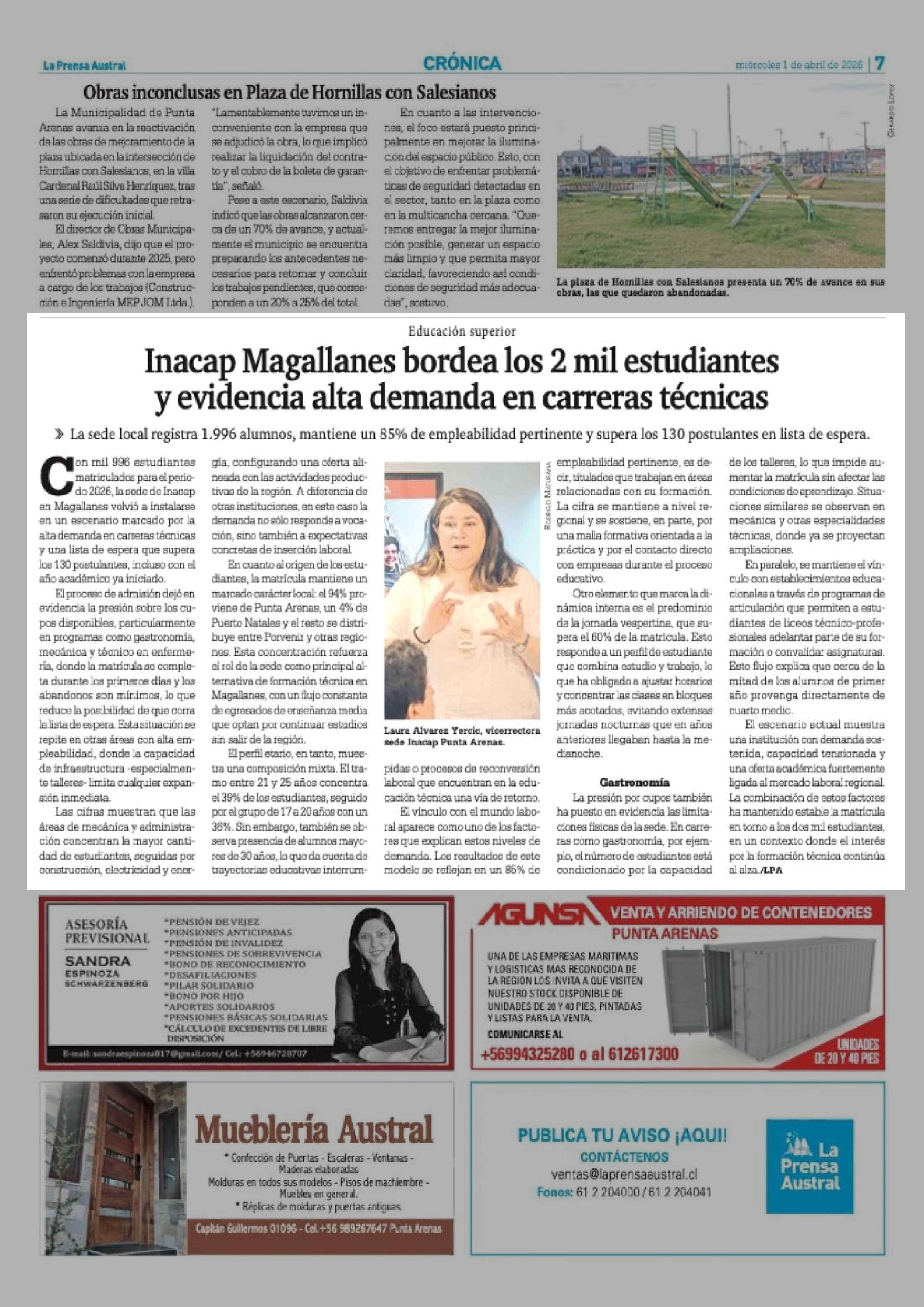 Inacap Magallanes bordea los 2 mil estudiantes y evidencia alta demanda en carreras técnicas 01-04-2026 La Prensa Austral |