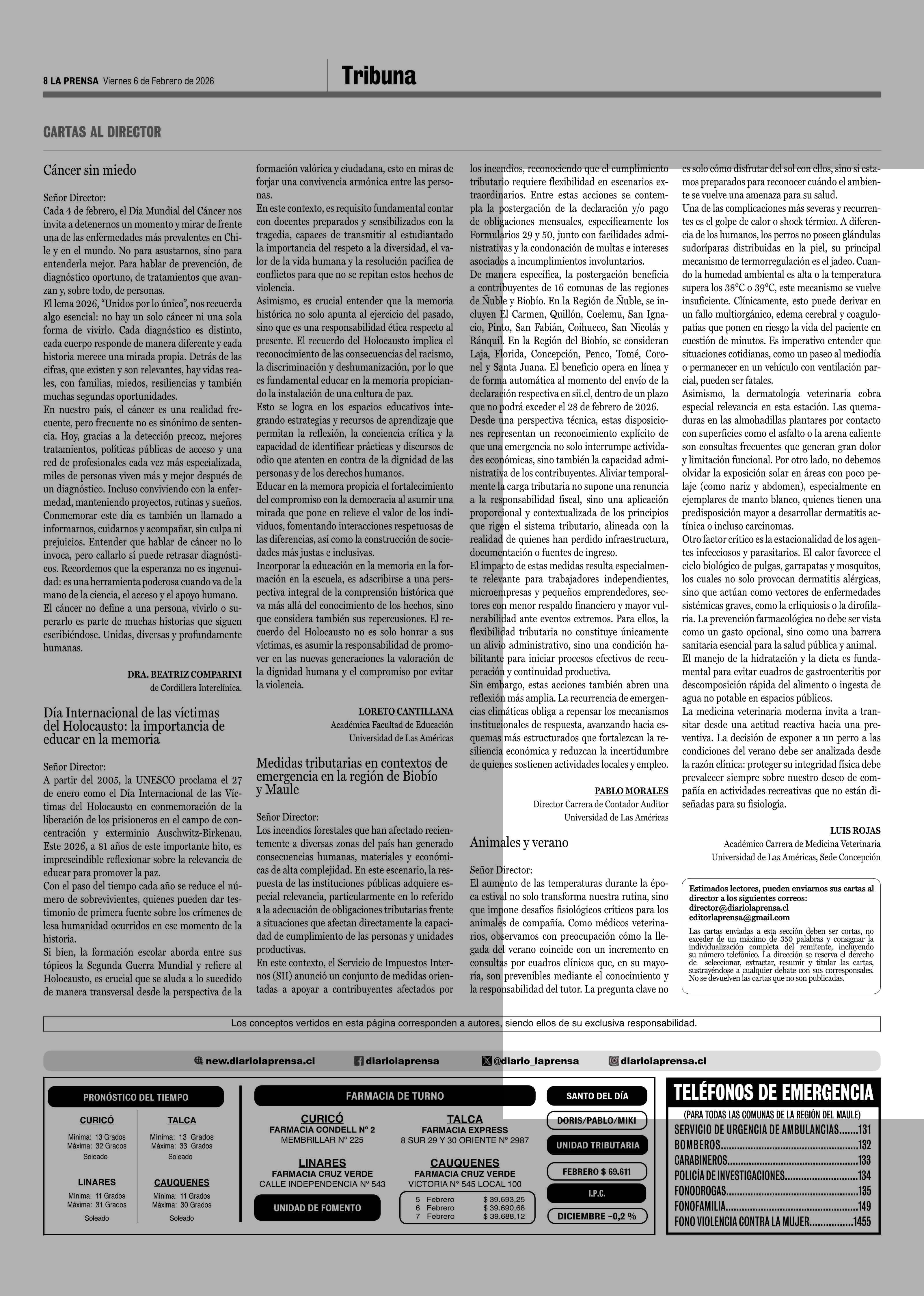 Cartas: Animales y verano 06-02-2026 La Prensa de Curicó |