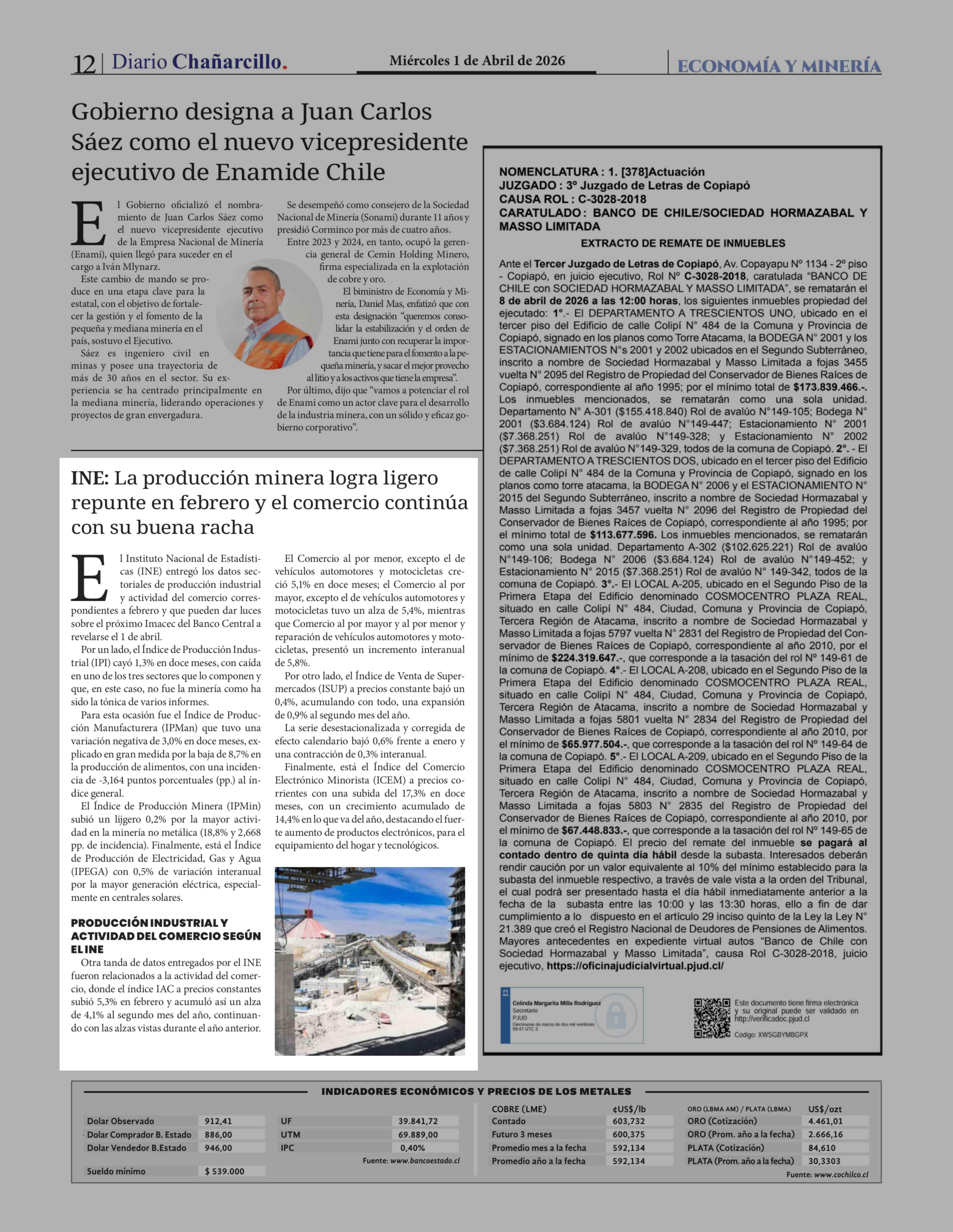 Fuente: Diario Chañarcillo (Diario Chanarcillo) Página(s): 12