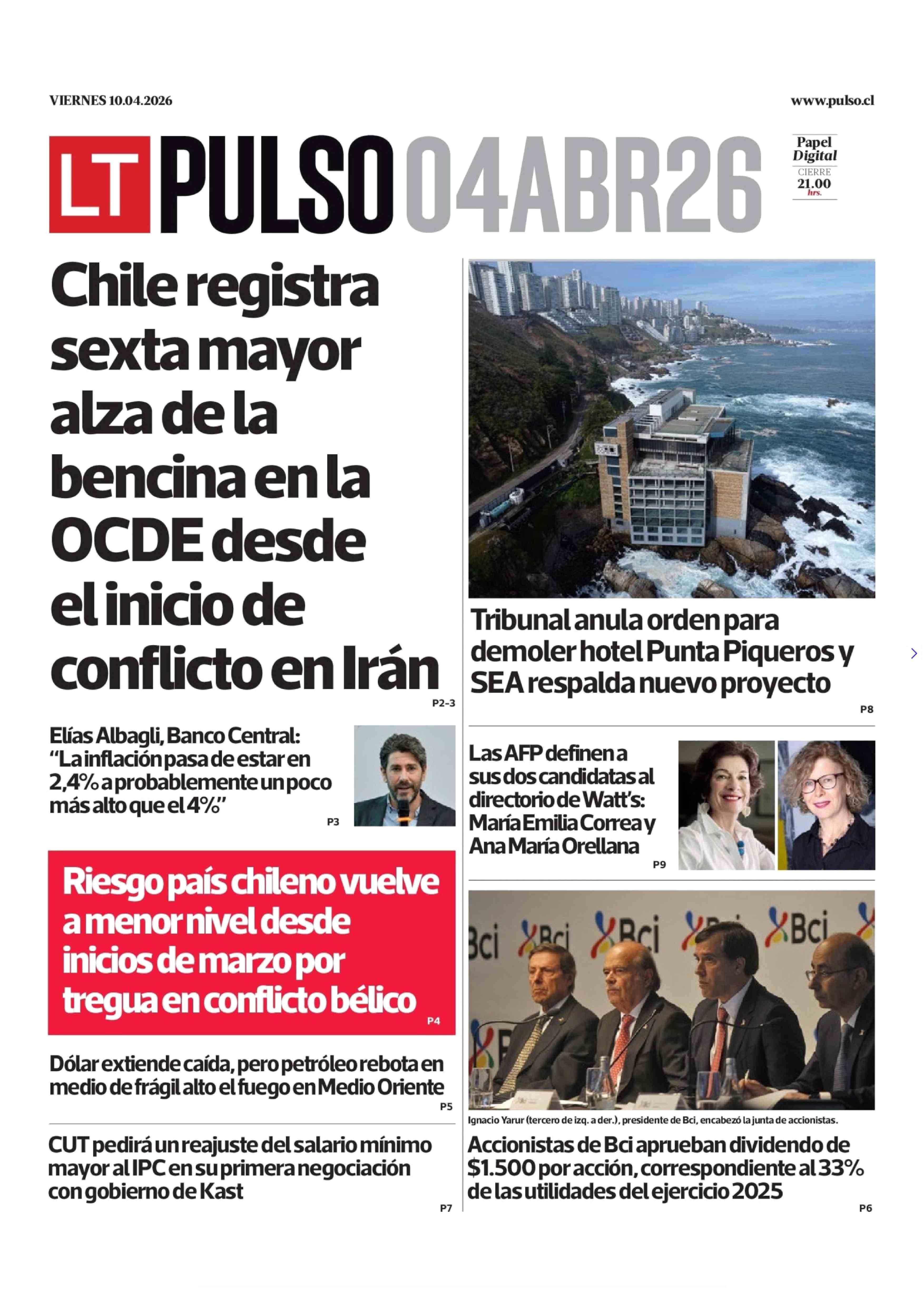 PORTADA LA TERCERA (PULSO) CHILE 10-04-2026 La Tercera |