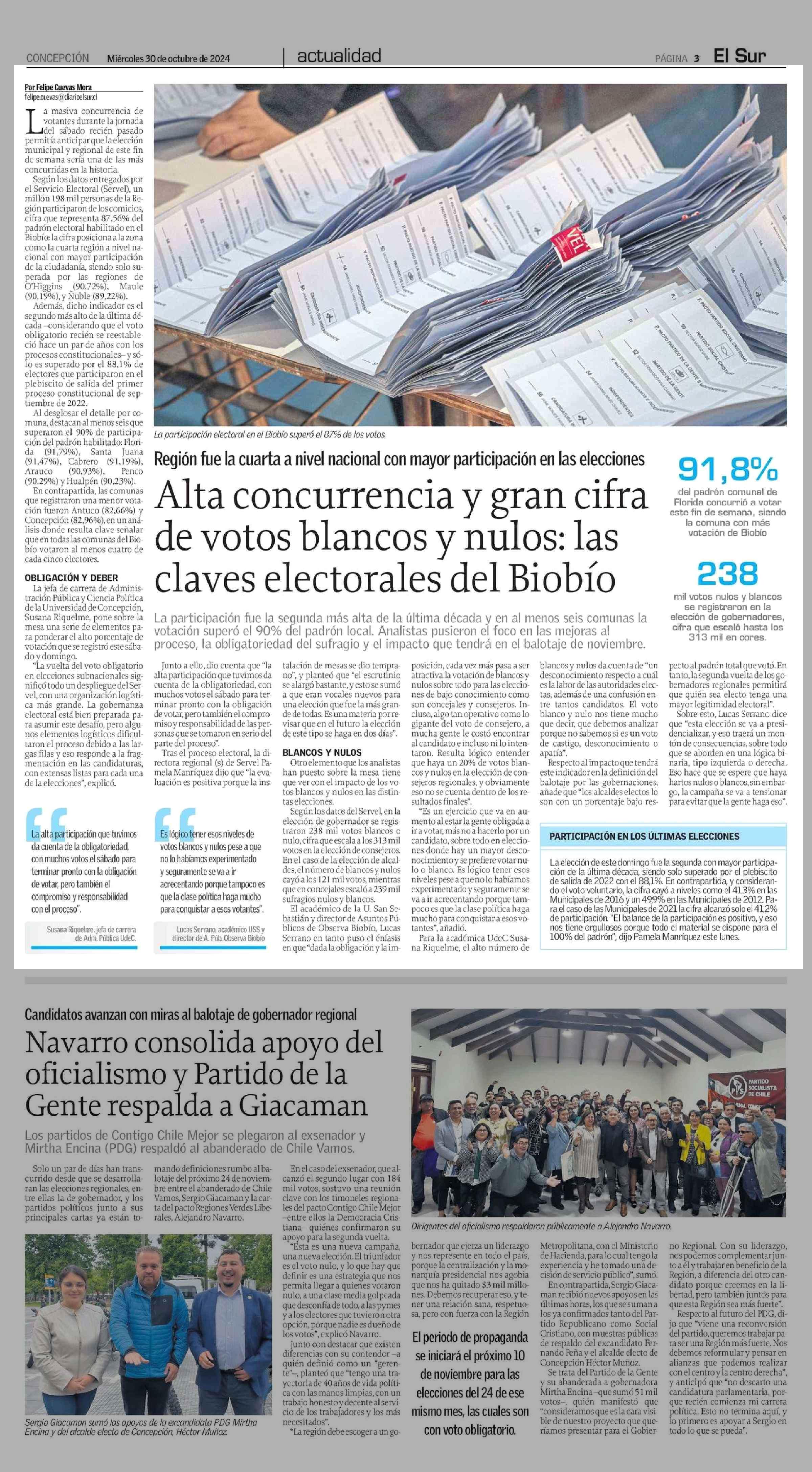 Alta concurrencia y gran cifra de votos blancos y nulos: las claves electorales del Biobío 30-10-2024 El Sur |
