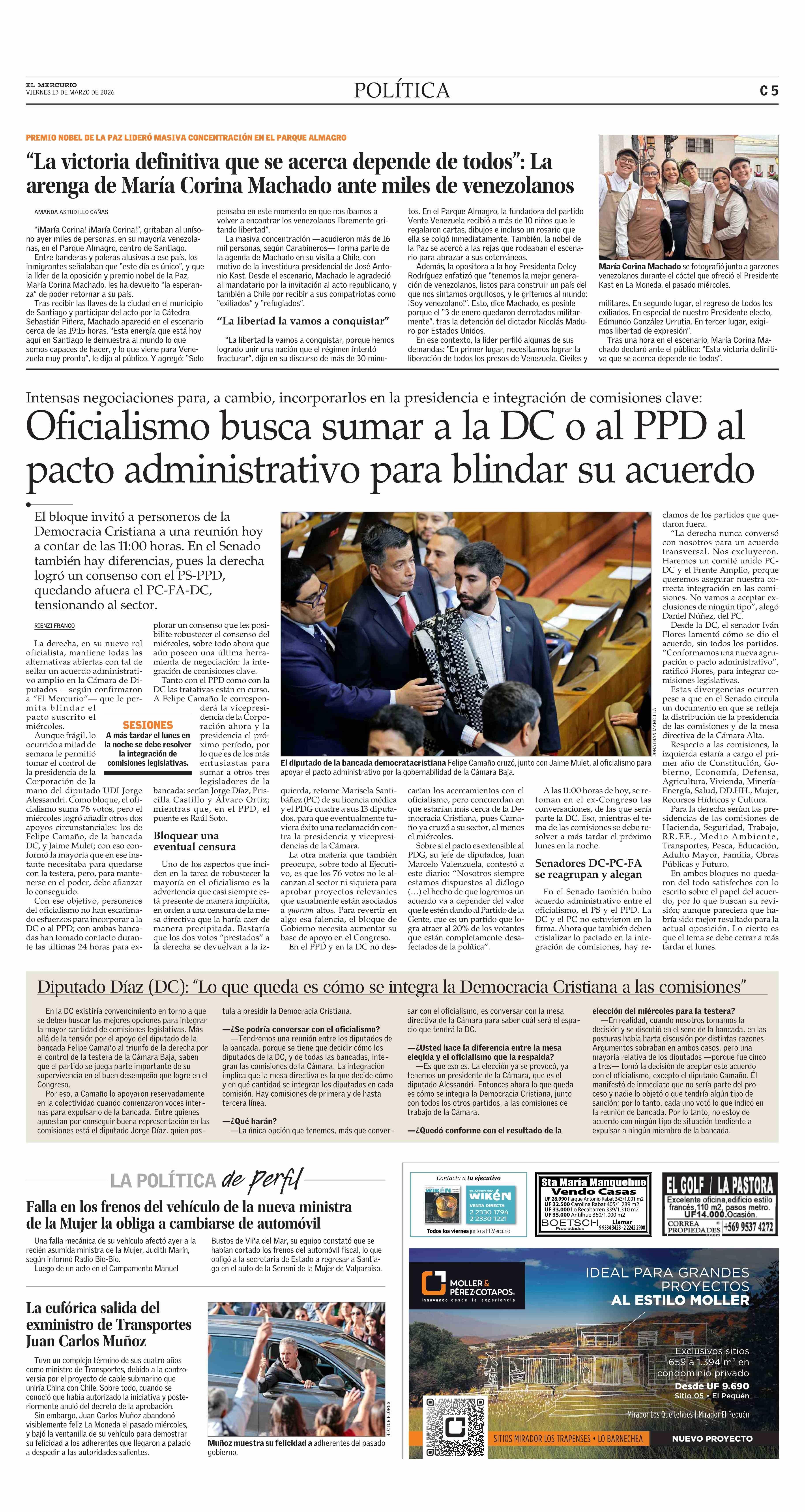 Oficialismo busca sumar a la DC o al PPD al pacto administrativo para blindar su acuerdo 13-03-2026 El Mercurio |