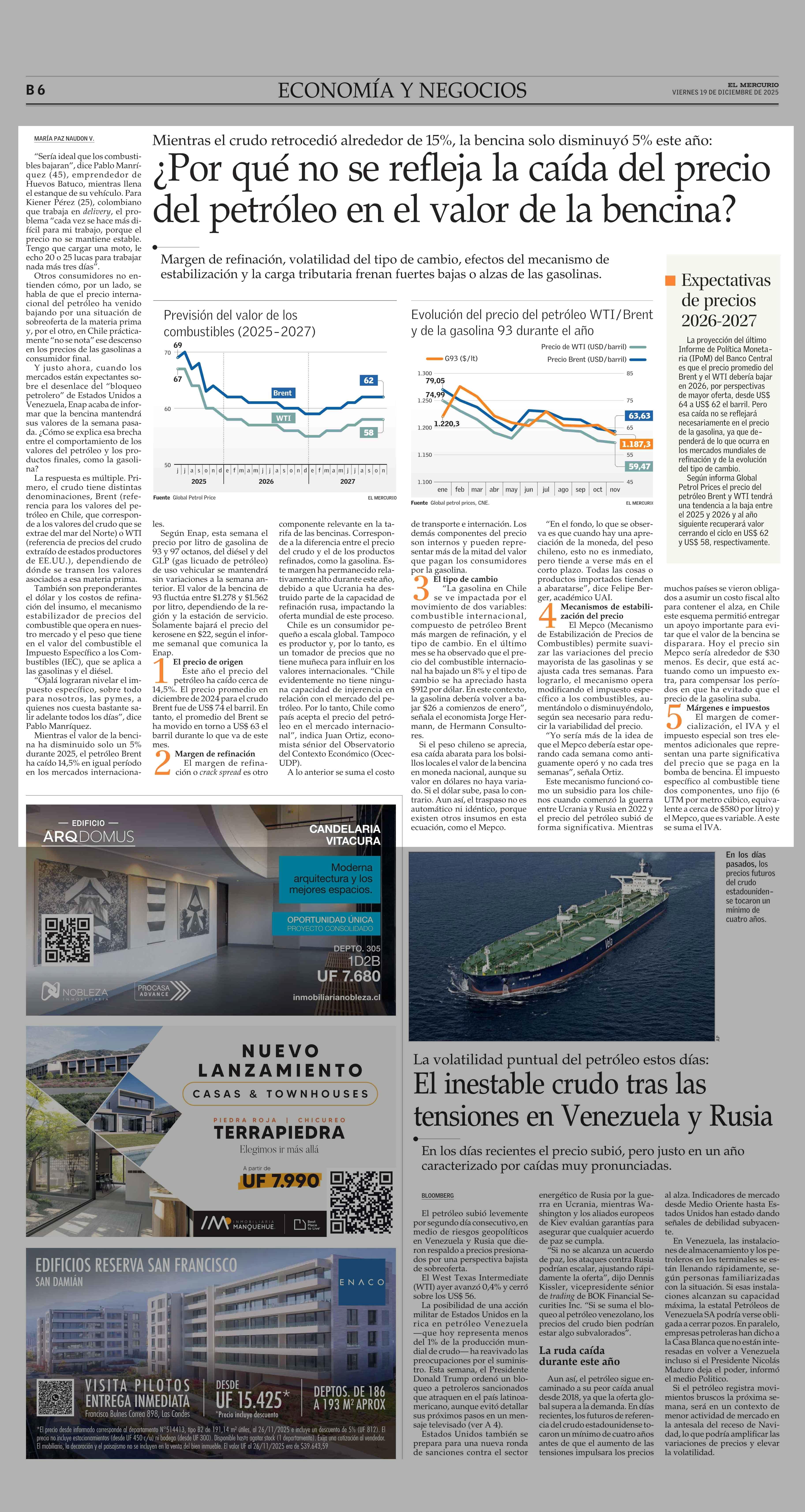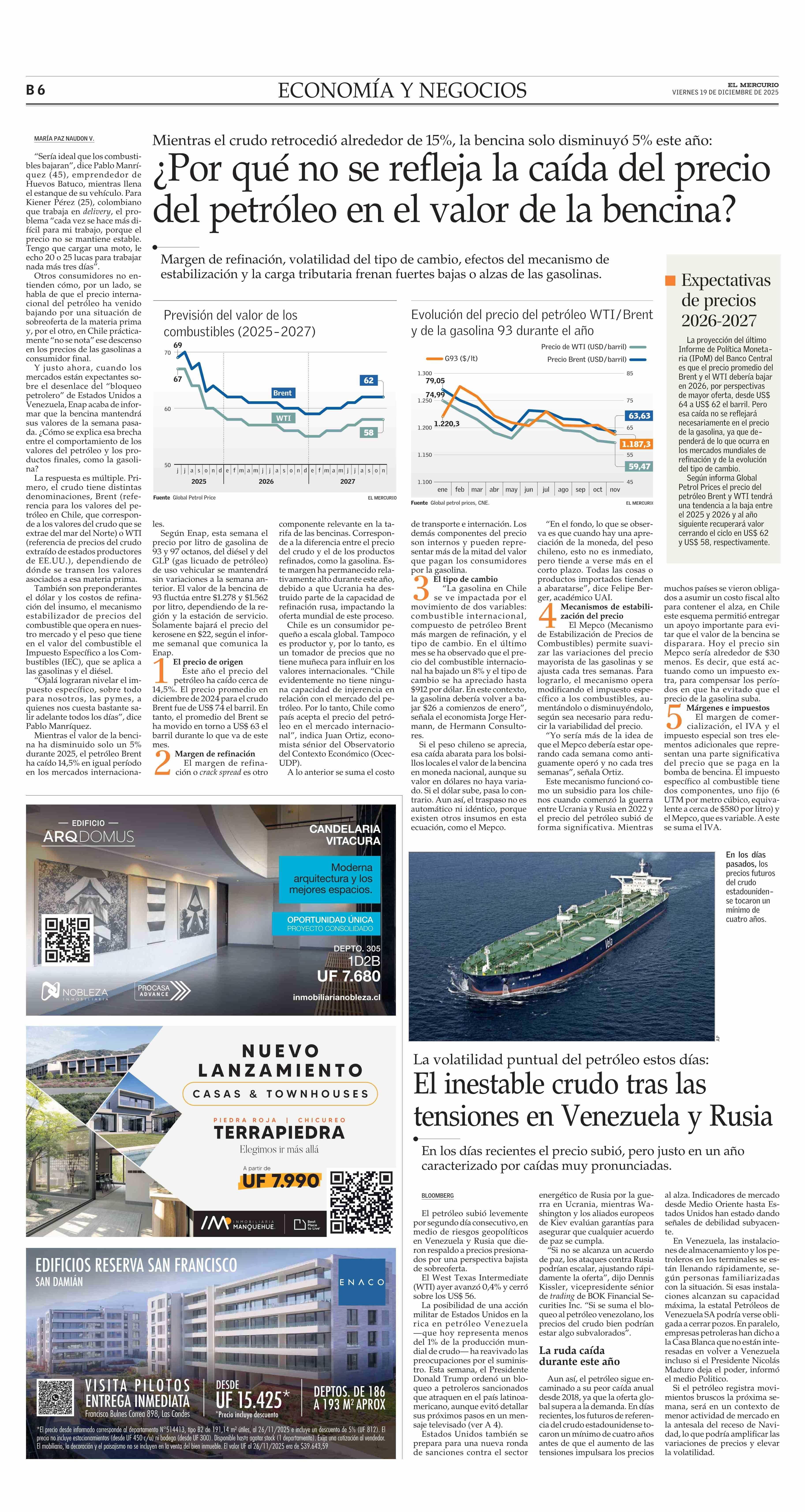 ¿Por qué no se refleja la caída del precio del petróleo en el valor de la bencina? 19-12-2025 El Mercurio |