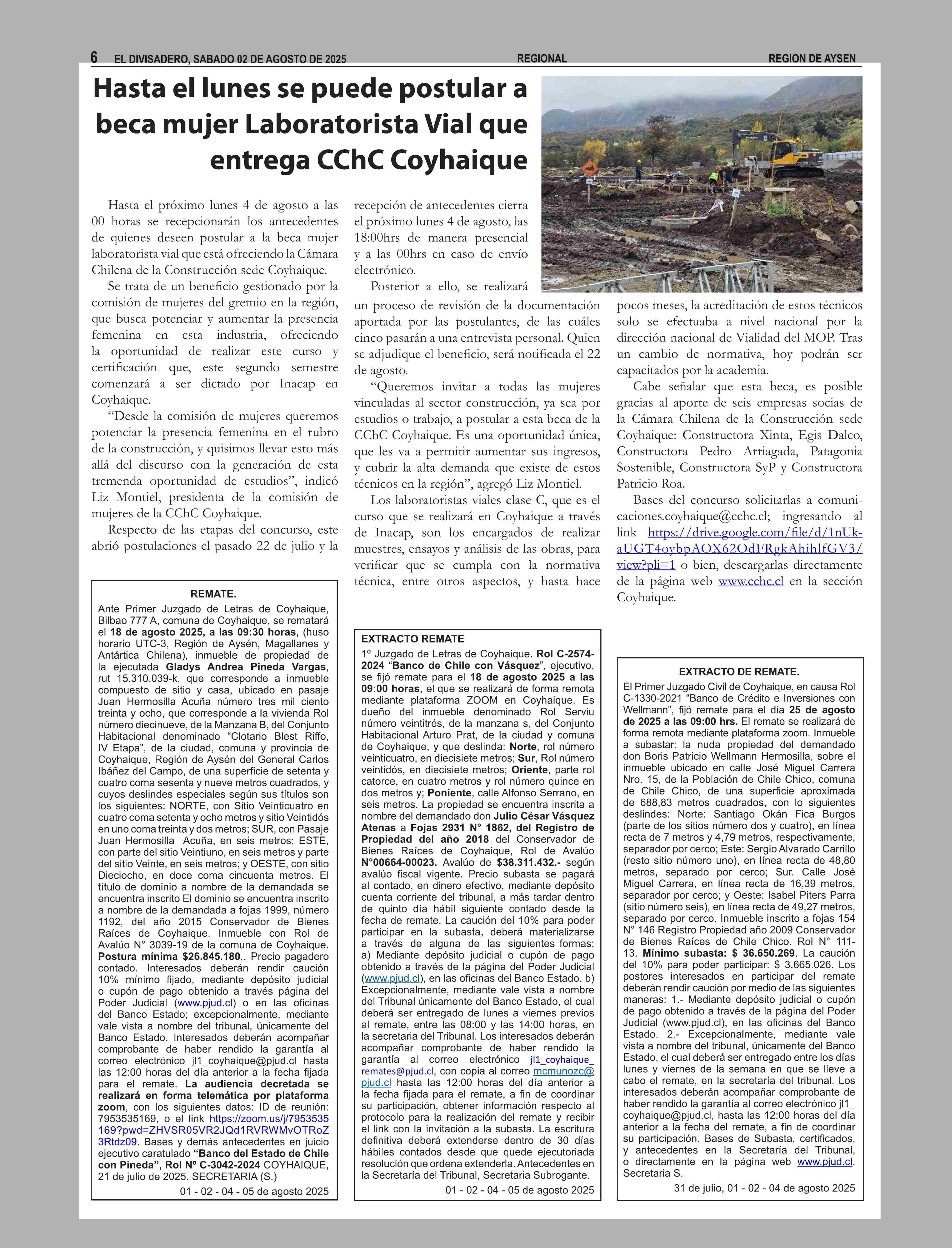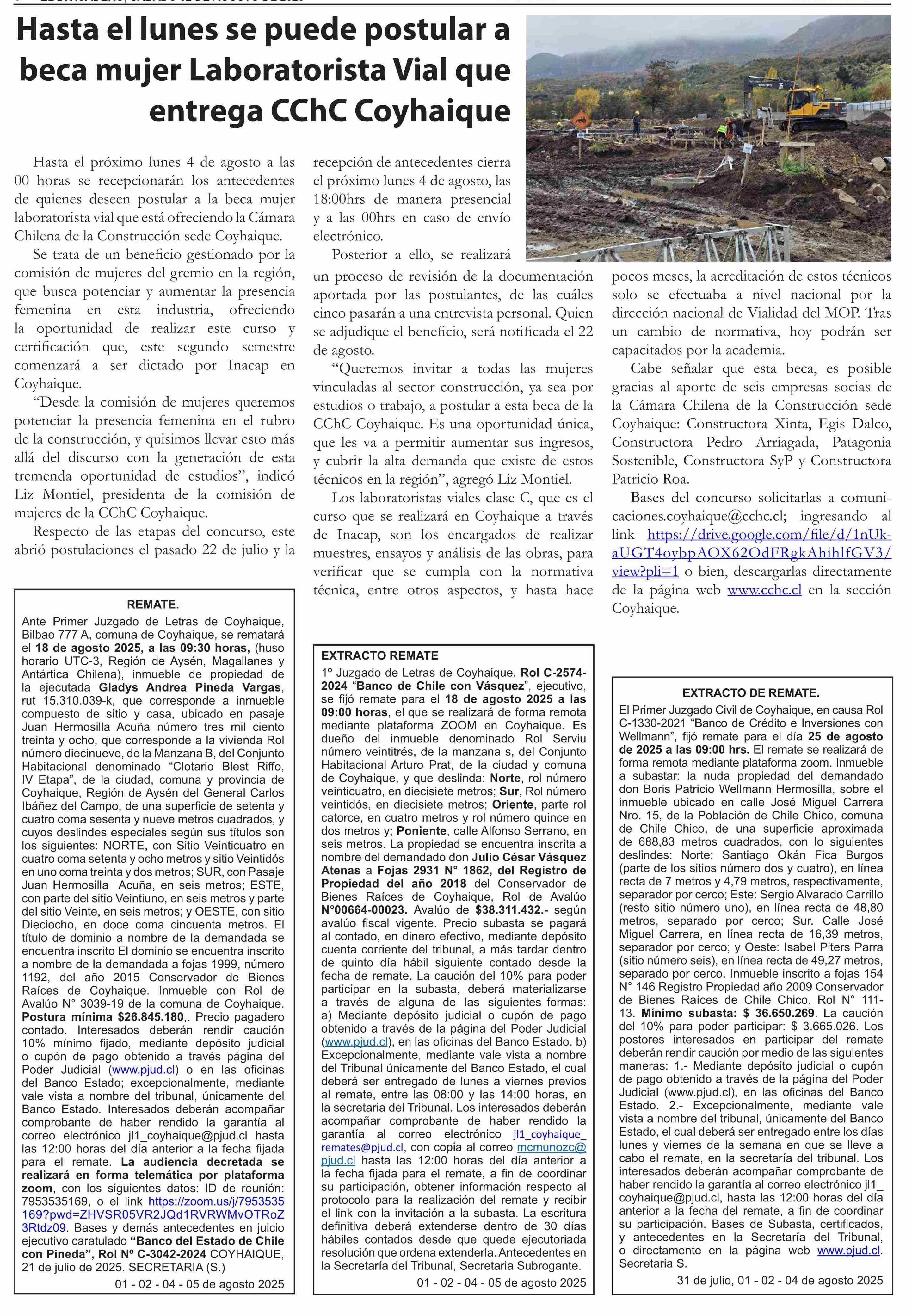 | Título: | Hasta el lunes se puede postular a beca mujer Laboratorista Vial que entrega CChC Coyhaique |