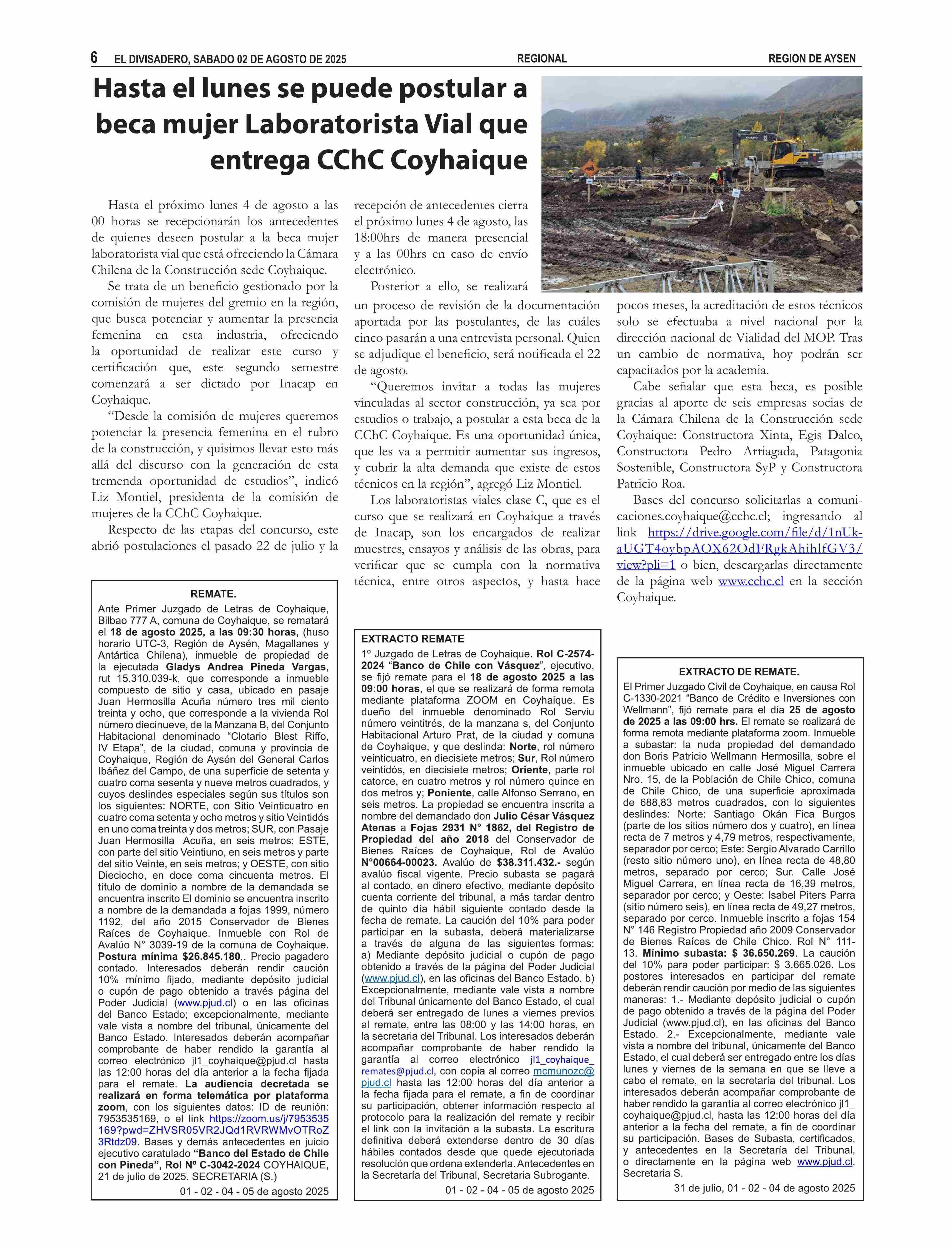 Hasta el lunes se puede postular a beca mujer Laboratorista Vial que entrega CChC Coyhaique 02-08-2025 El Divisadero |