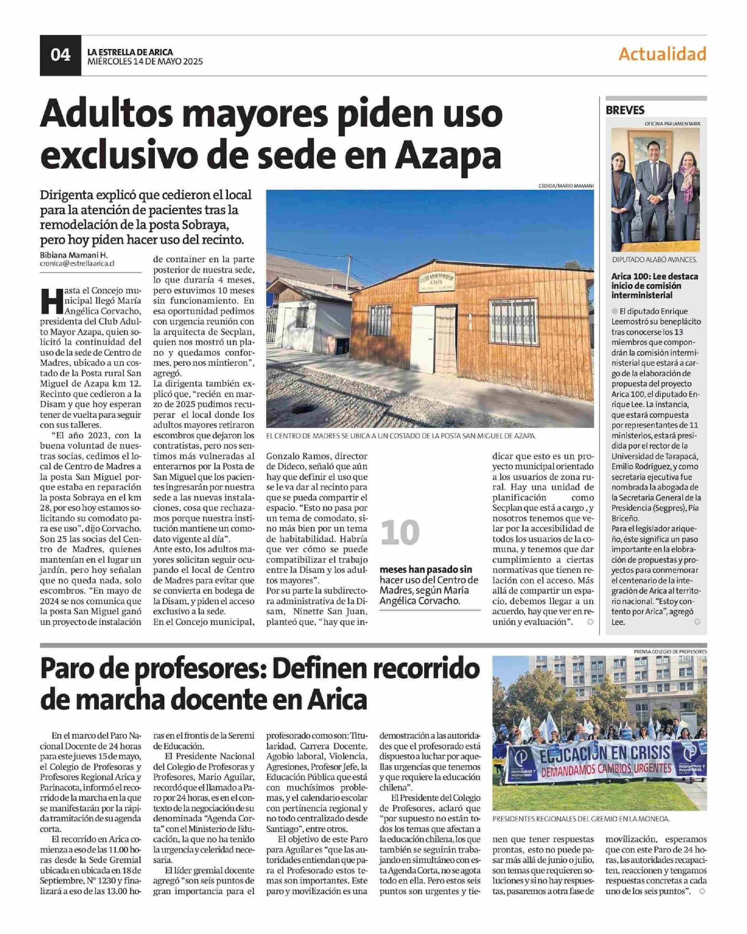 | Fecha: | 14-05-2025 | Sector: | Noticia general | Región: | Región de Arica y Parinacota |