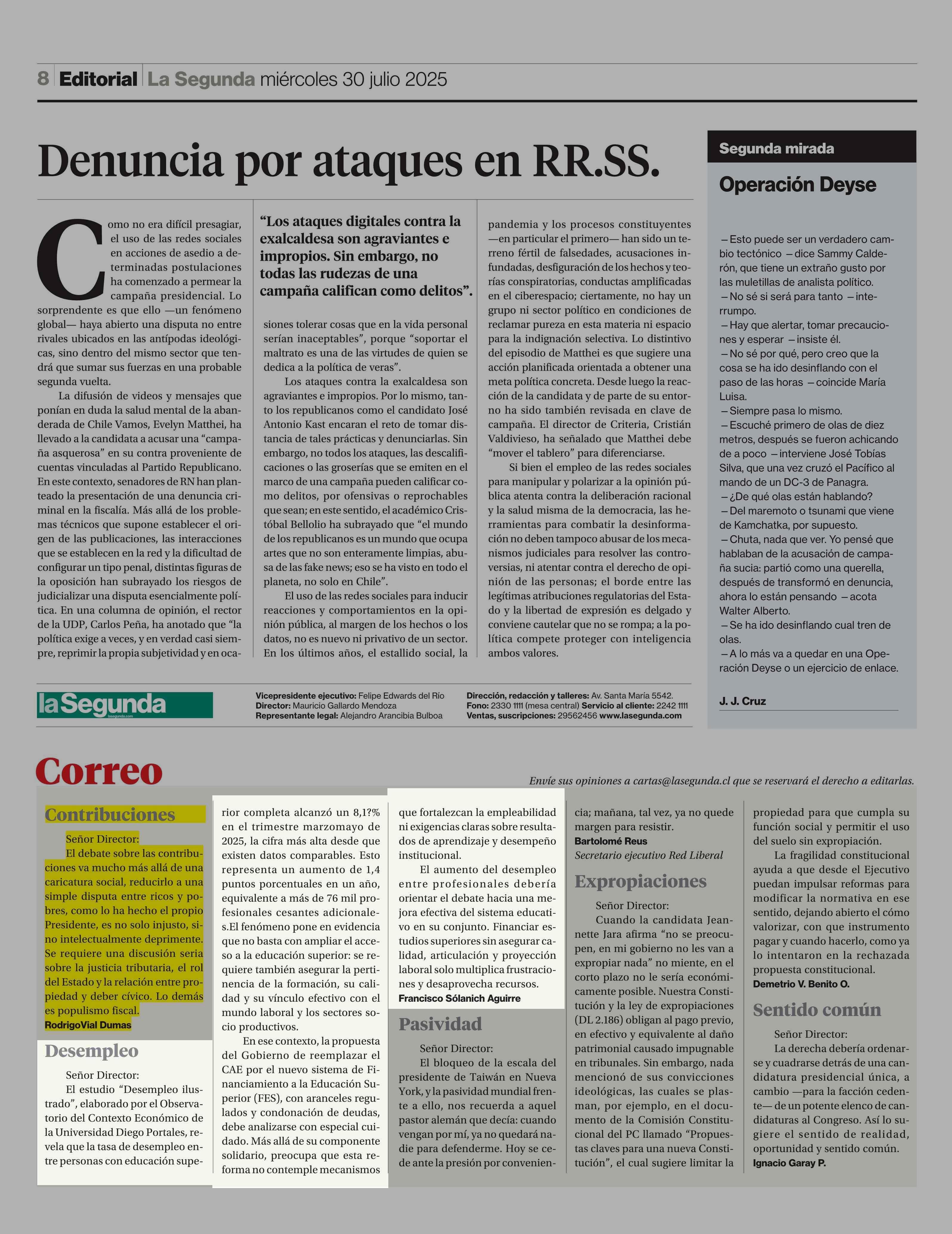 CARTAS: Desempleo 30-07-2025 La Segunda |