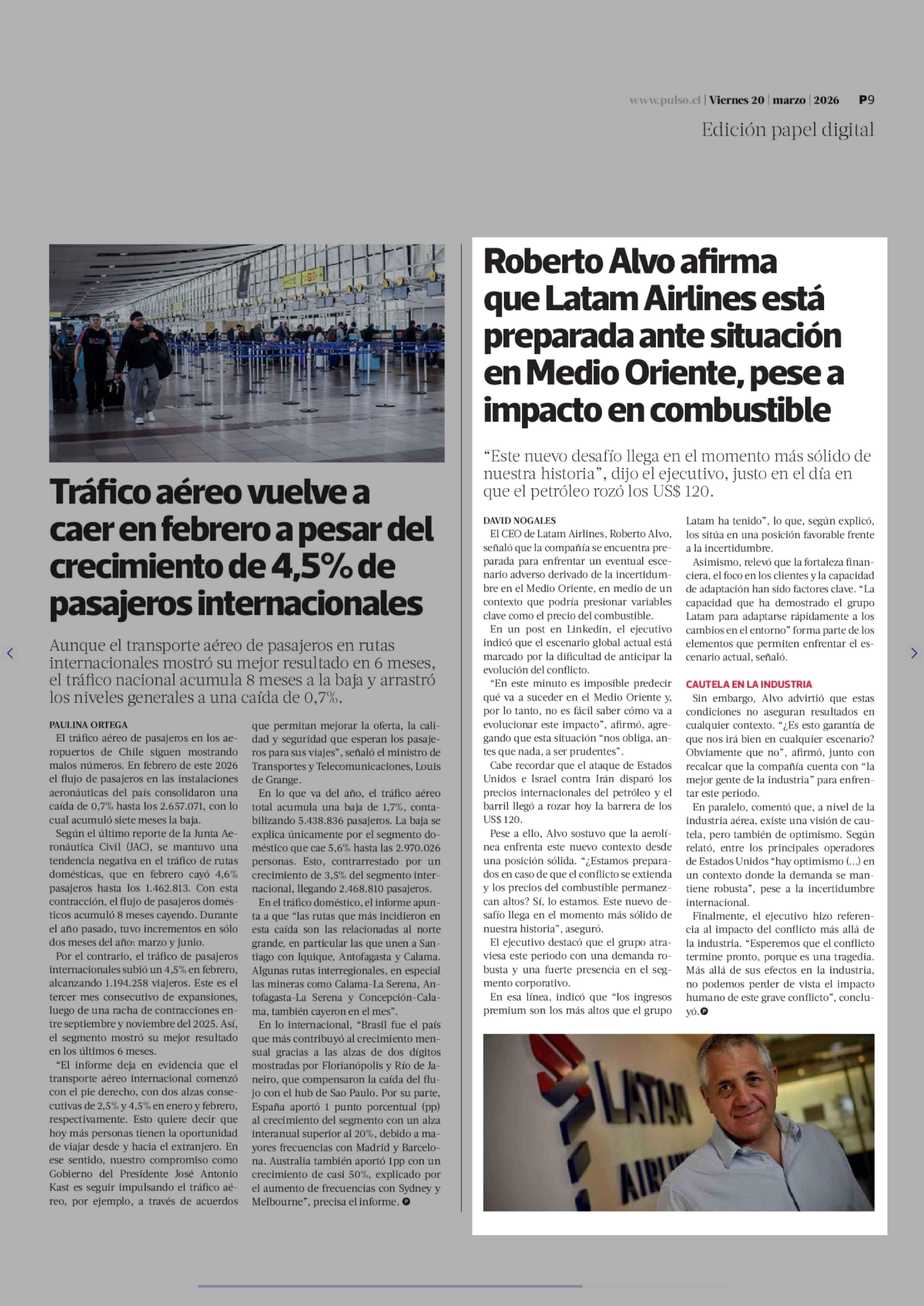 Título: Roberto Alvo afirma que Latam Airlines está preparada ante situación en Medio Oriente, pese a impacto en combustible