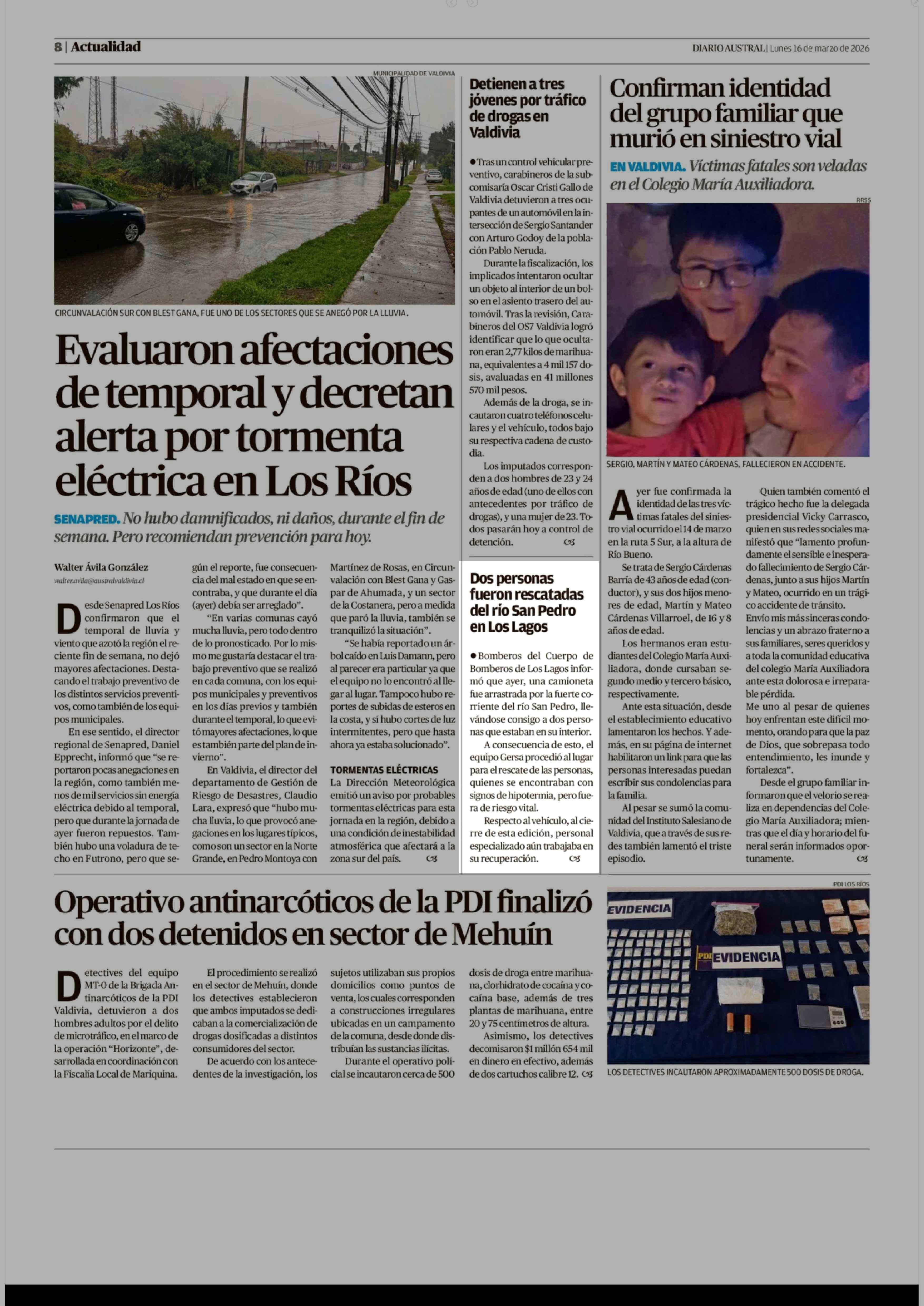 | Fecha: | 16-03-2026 | Sector: | Noticia general | Región: | Región de Los Ríos |