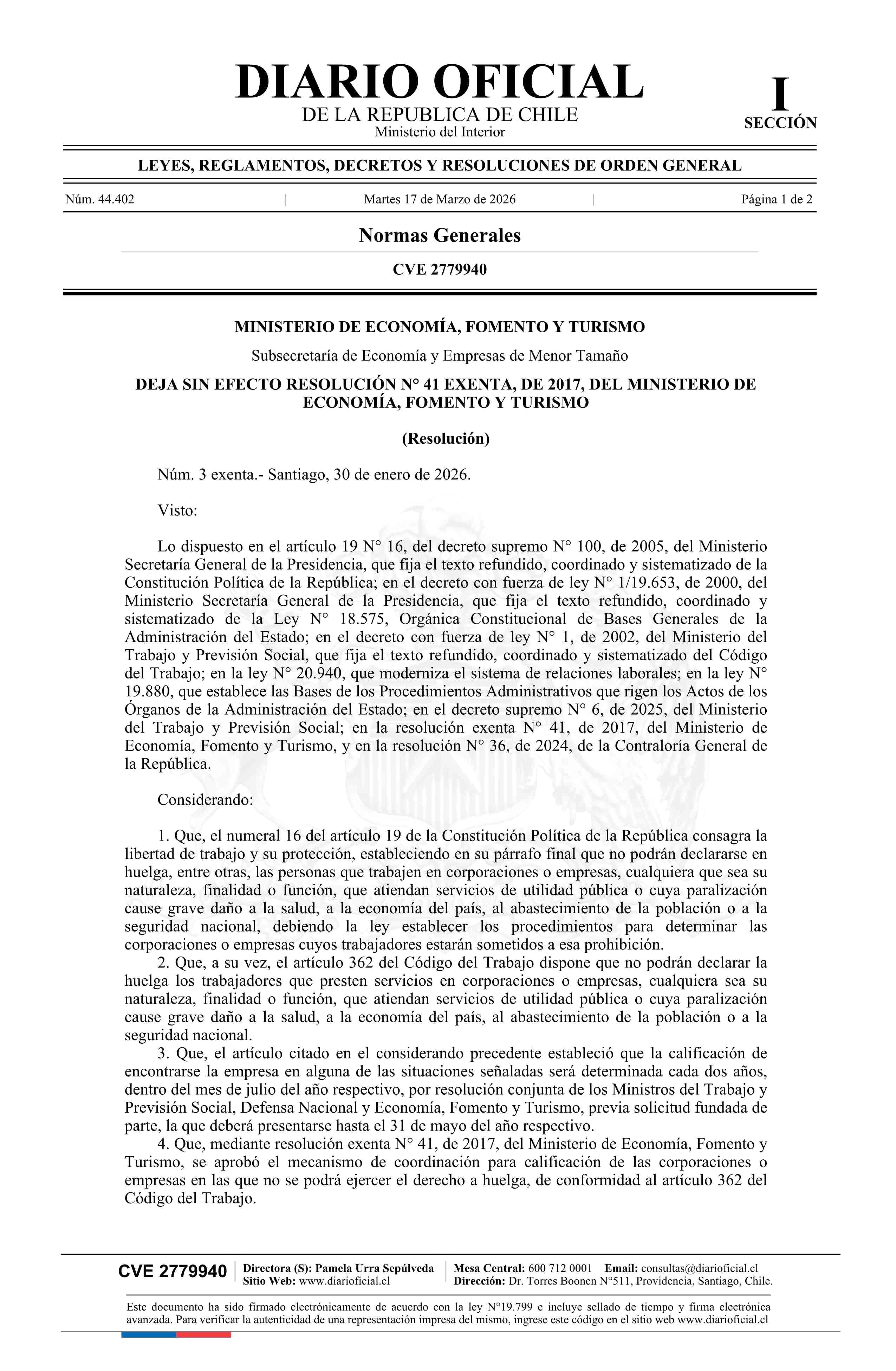 Título: Resolución exenta número 3, de 2026.- Deja sin efecto resolución N° 41 exenta, de 2017