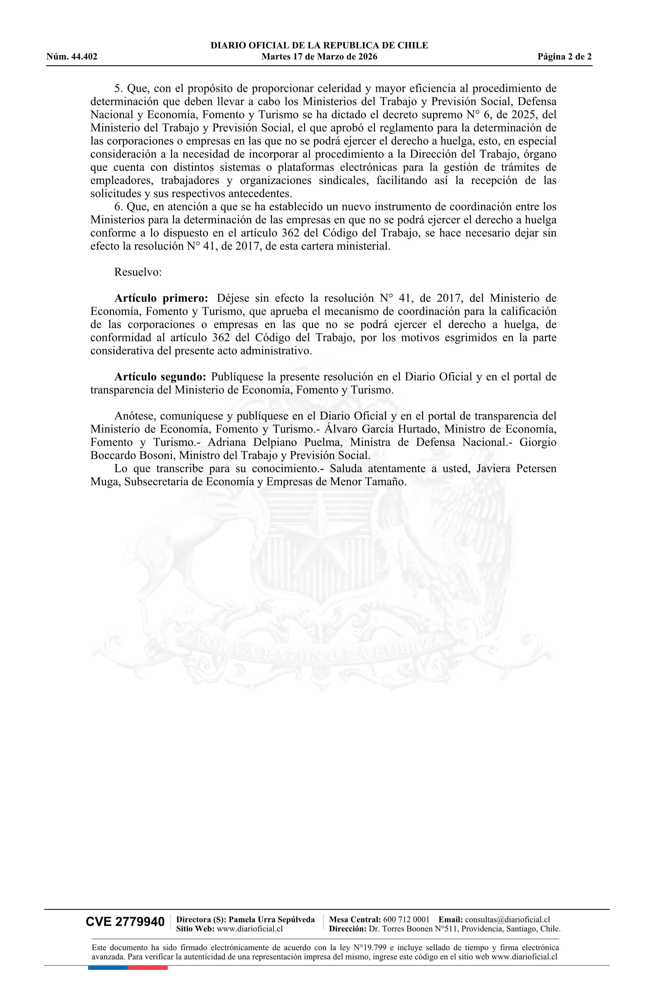 Fuente: Diario Oficial Edición Electrónica (Diario Oficial de Chile - 1 Normas Generales) Página(s): 17-18