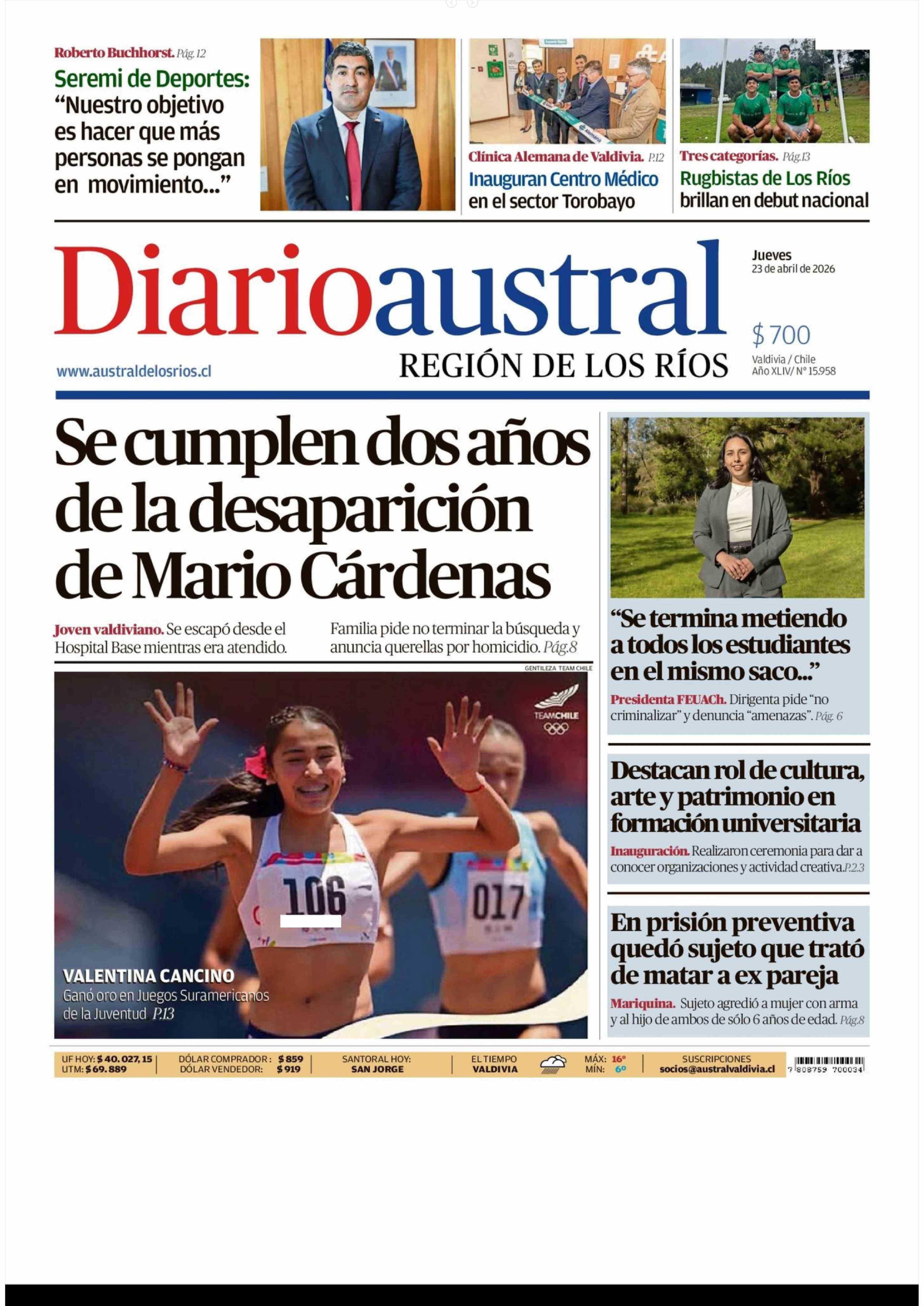 Fecha: 23-04-2026 Sector: Portada Región: Región de Los Ríos