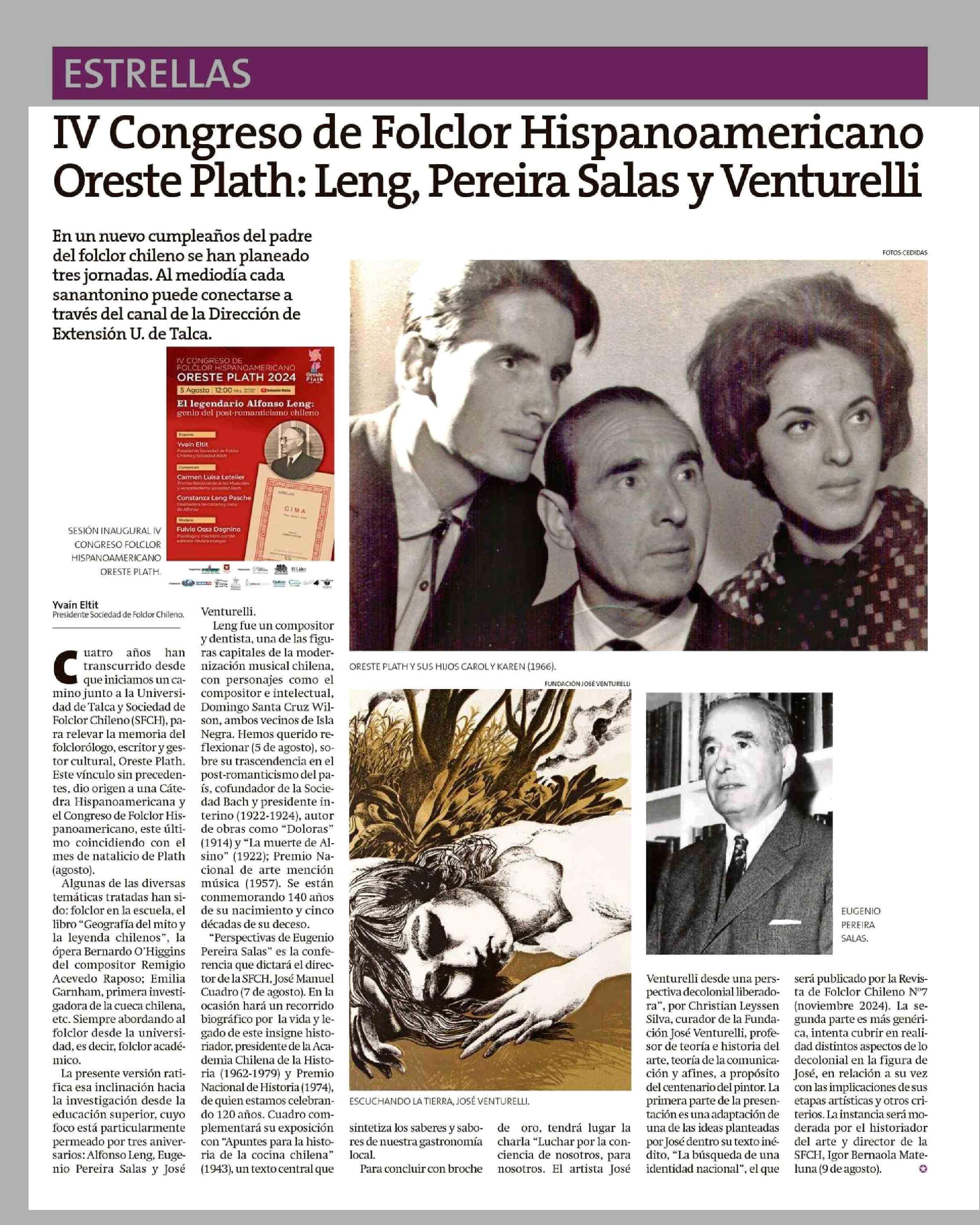 IV Congreso de Folclor Hispanoamericano Oreste Plath: Leng, Pereira Salas y Venturelli 04-08-2024 El Líder |