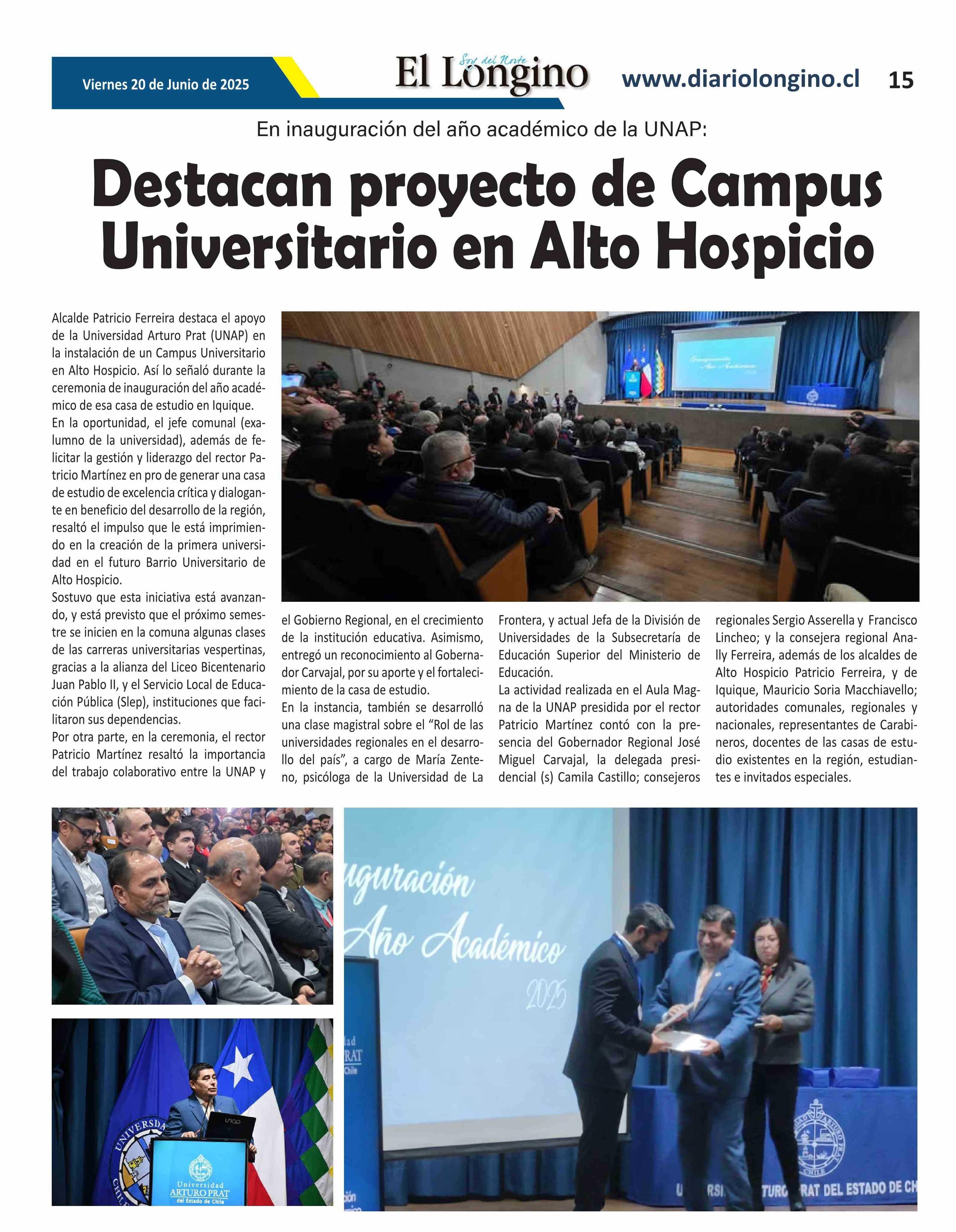 Destacan proyecto de Campus Universitario en Alto Hospicio 20-06-2025 El Longino |