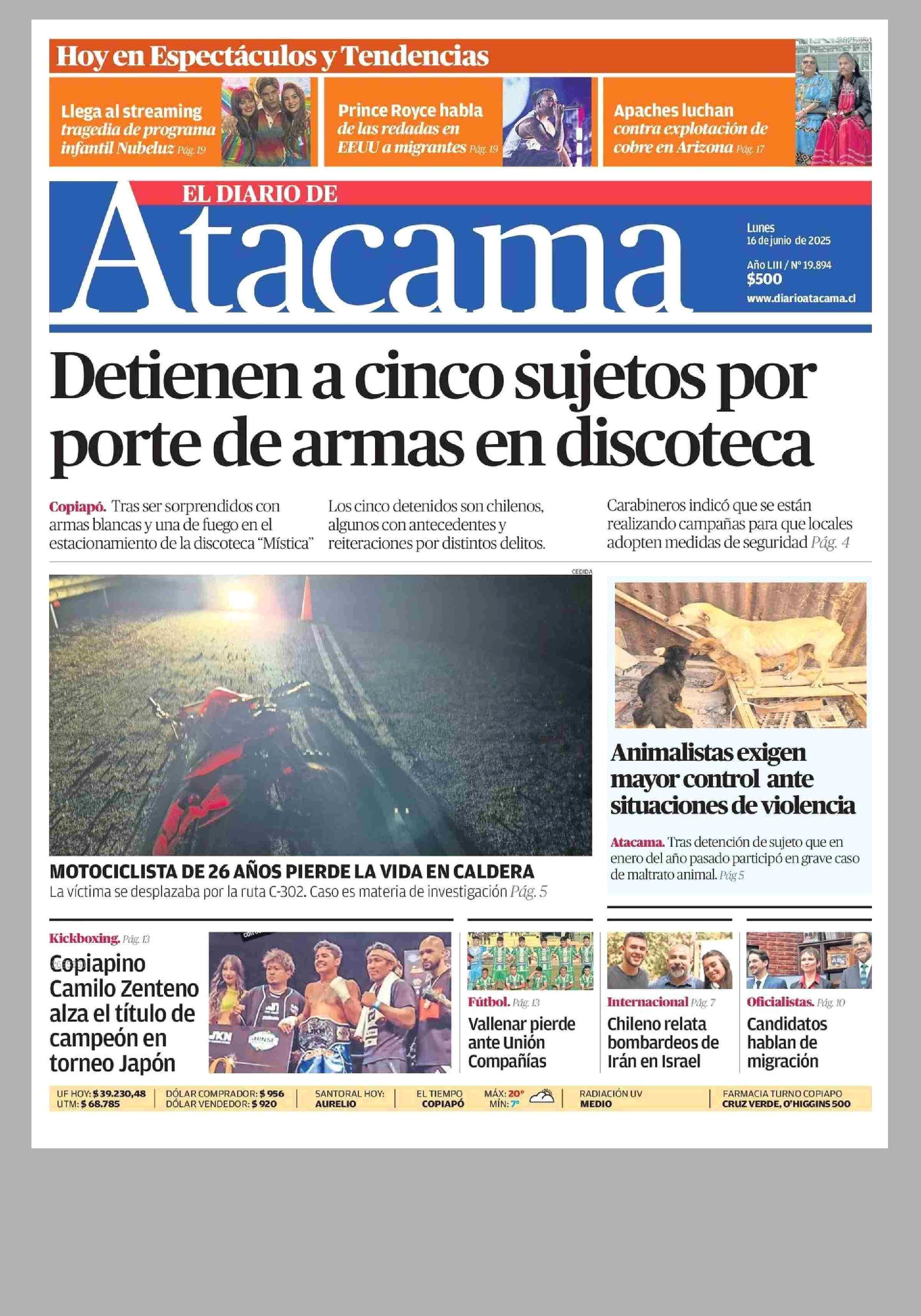 | Fecha: | 16-06-2025 | Sector: | Portada | Región: | Región de Atacama |