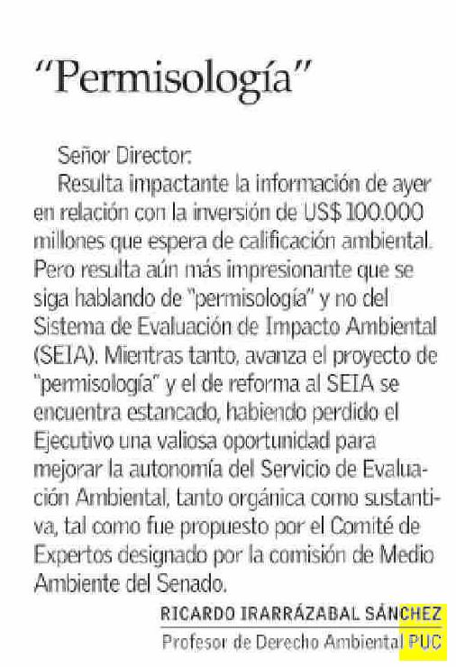 CARTAS: "Permisología" 30-04-2025 El Mercurio |