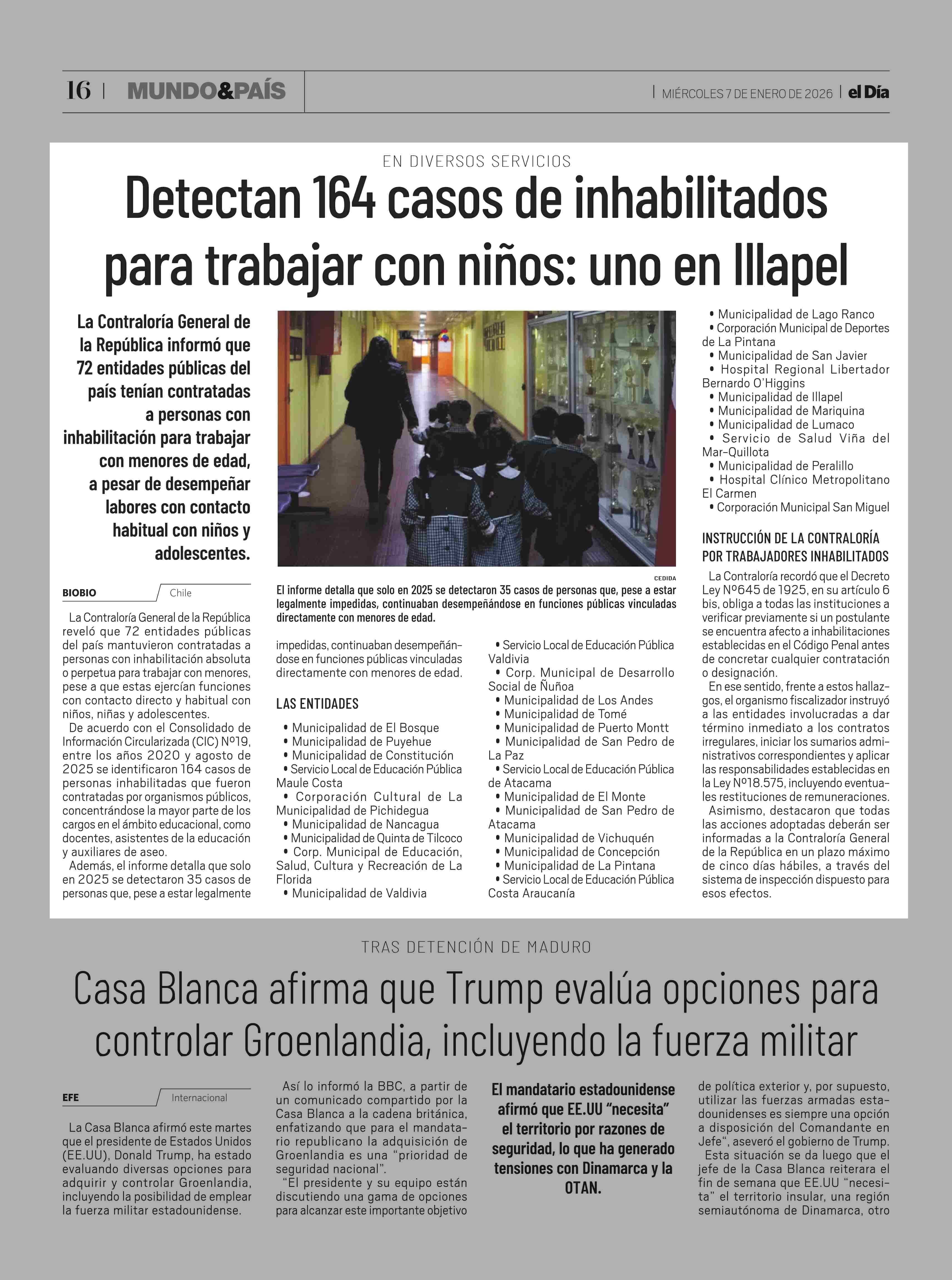 Detectan 164 casos de inhabilitados para trabajar con niños: uno en Illapel 07-01-2026 El Día |