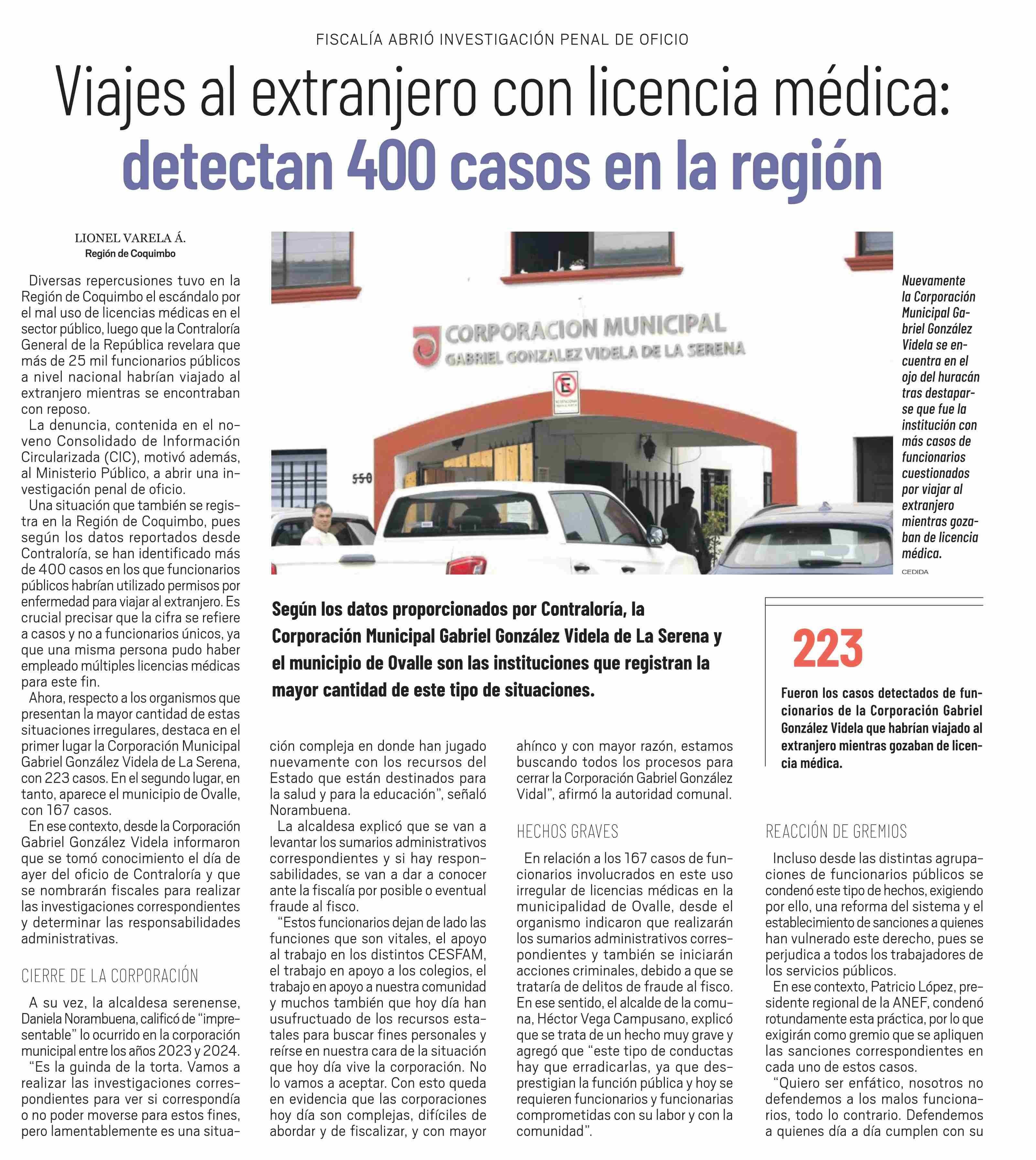 Viajes al extranjero con licencia médica: detectan 400 casos en la región 23-05-2025 El Ovallino |