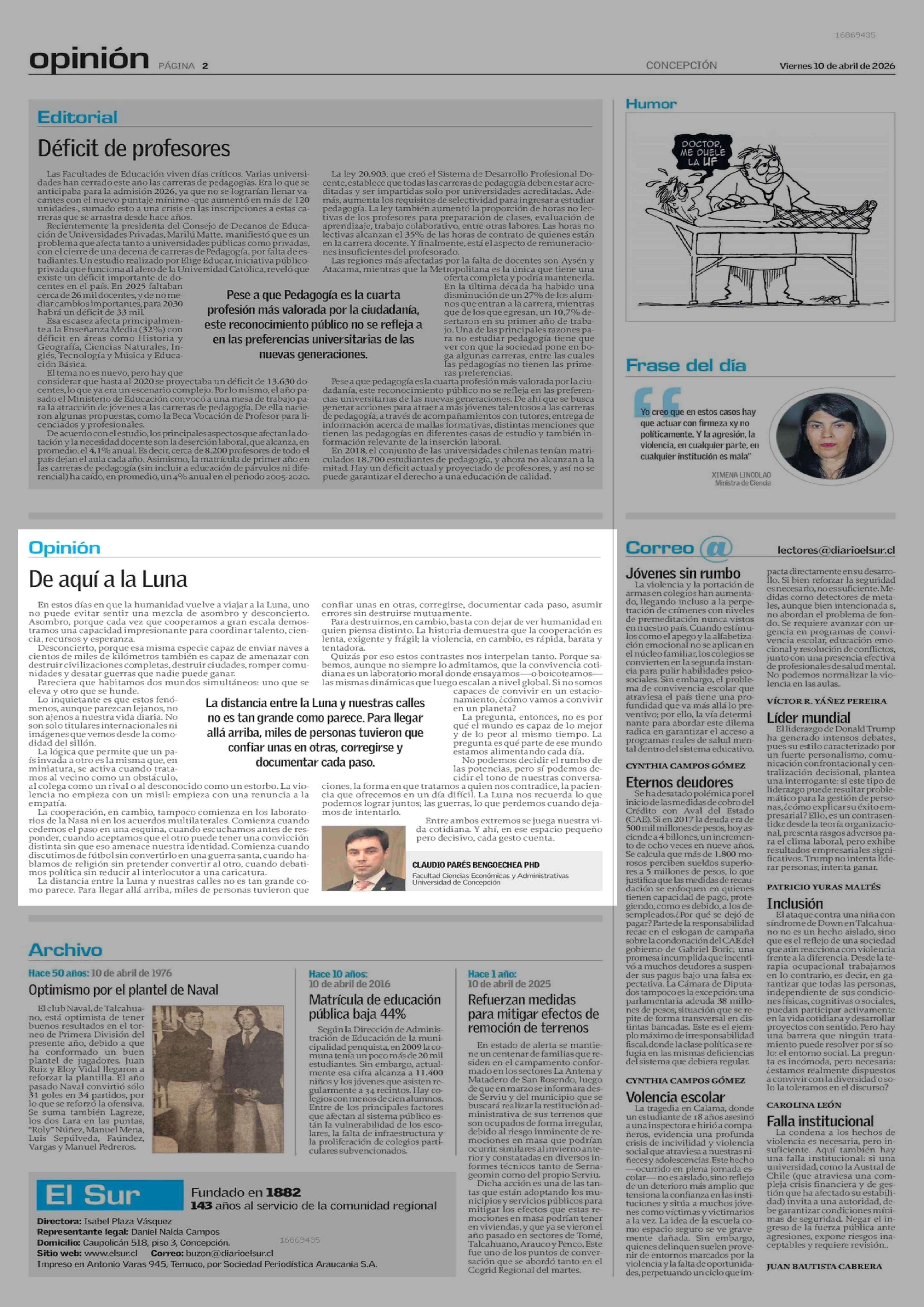 Fecha: 10-04-2026 Sector: Columnas de Opinión Región: Región del Bío-Bío