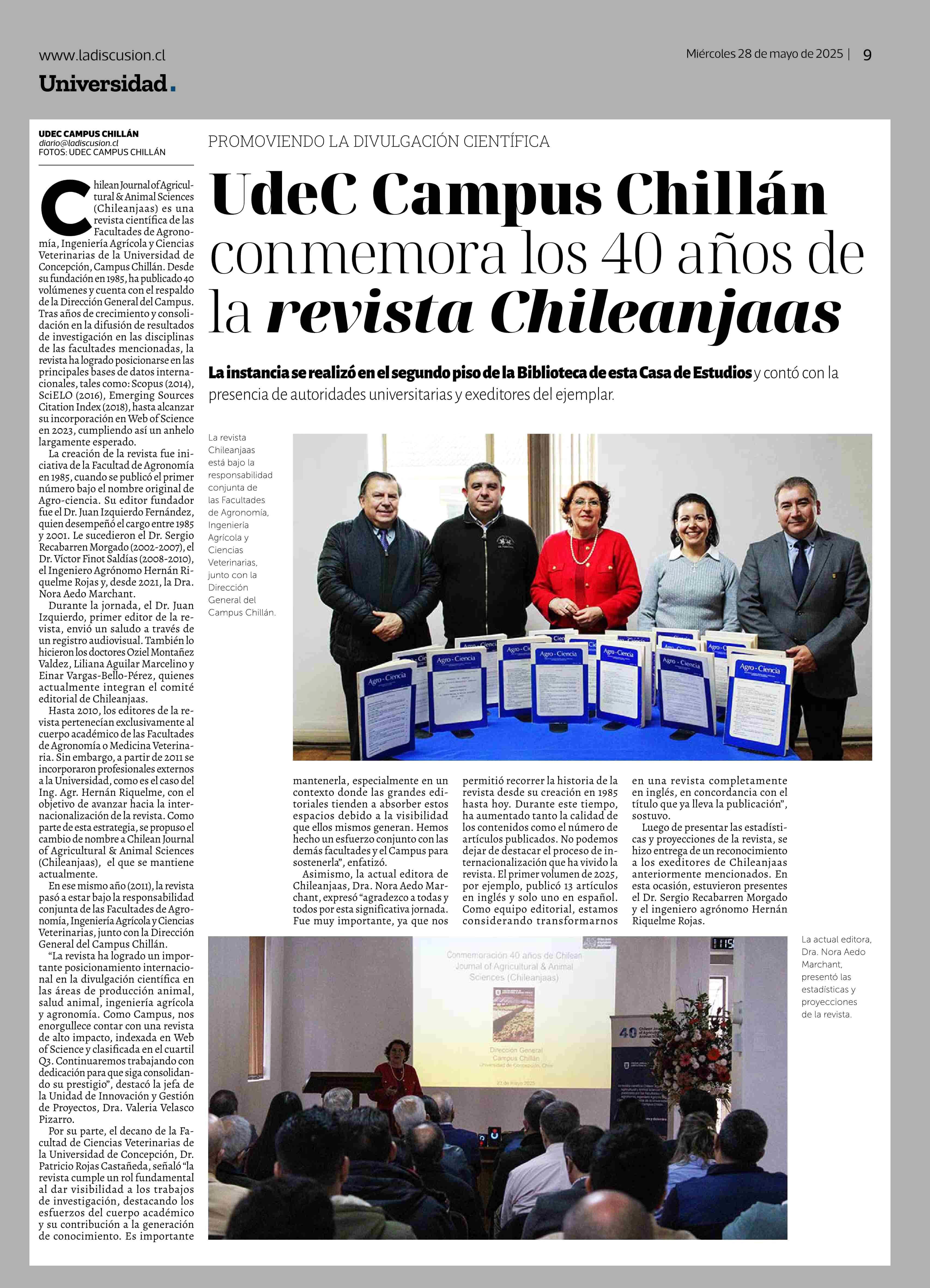 UdeC Campus Chillán conmemora los 40 años de la revista Chileanjaas 28-05-2025 La Discusión |