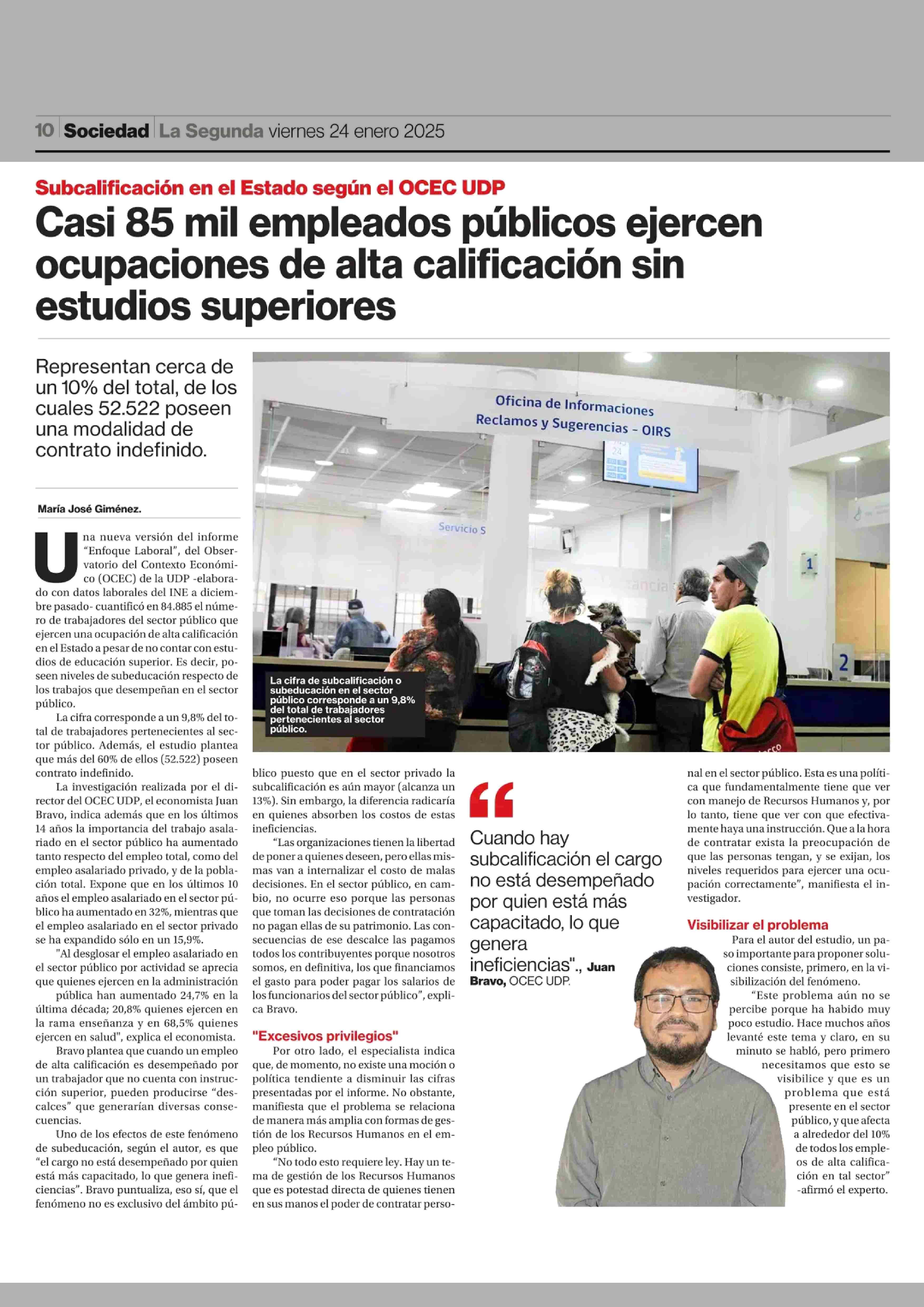 Casi 85 mil empleados públicos ejercen ocupaciones de alta calificación sin estudios superiores 24-01-2025 La Segunda |