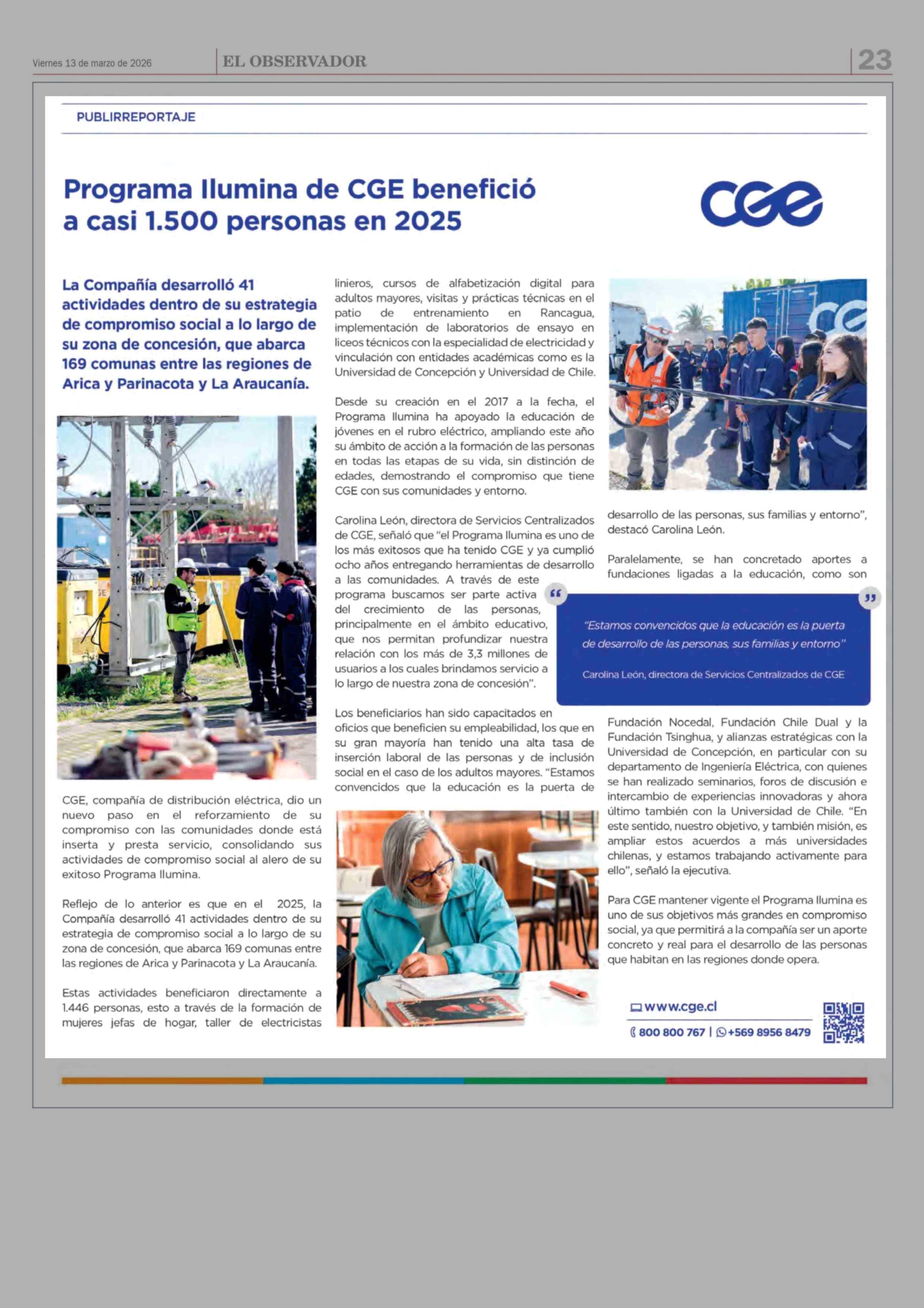 Título: Programa Ilumina de CGE benefició a casi 1.500 personas en 2025