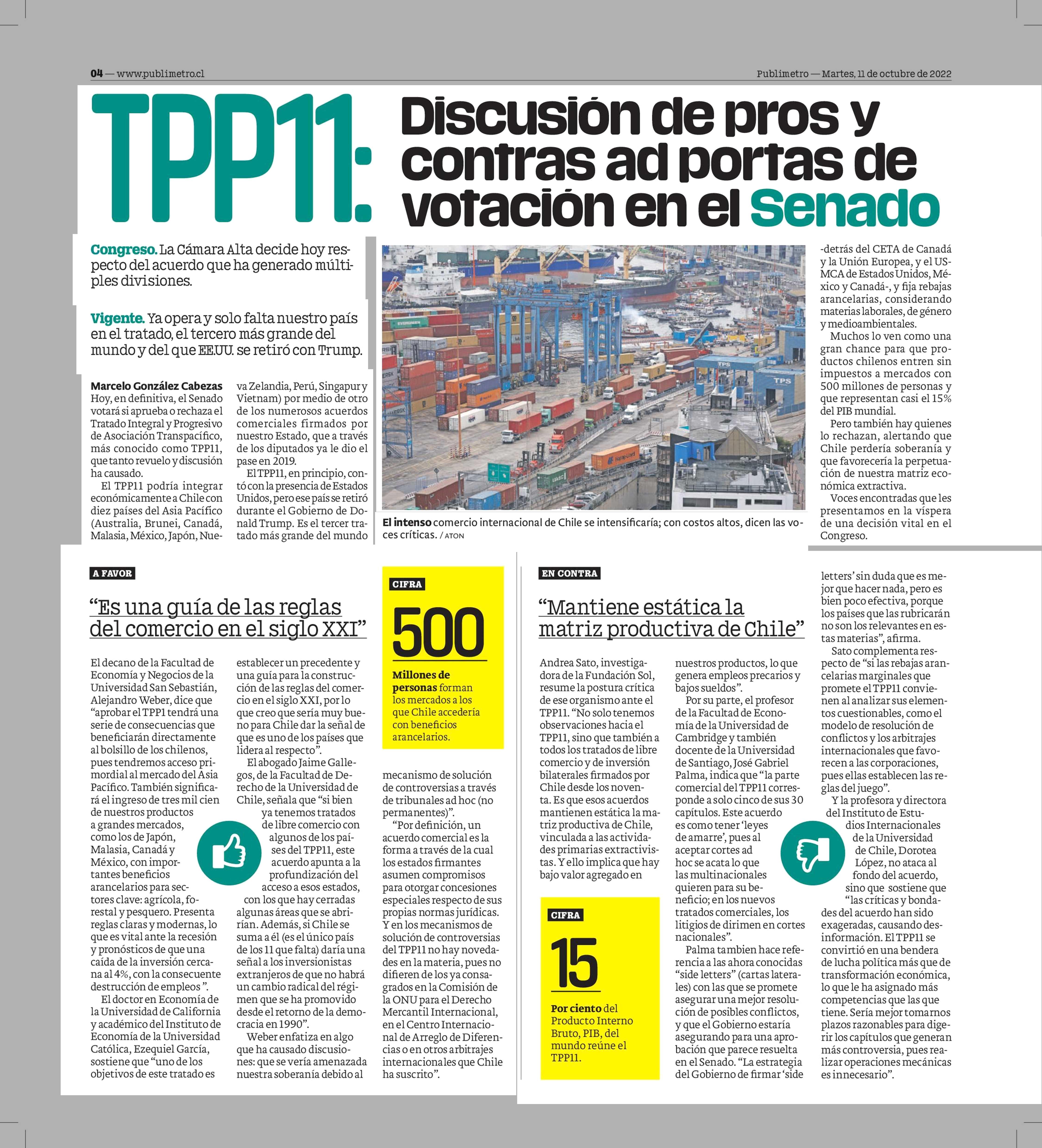TPP11: Discusión de pros y contras ad portas de votación en el Senado 11-10-2022 Publimetro |