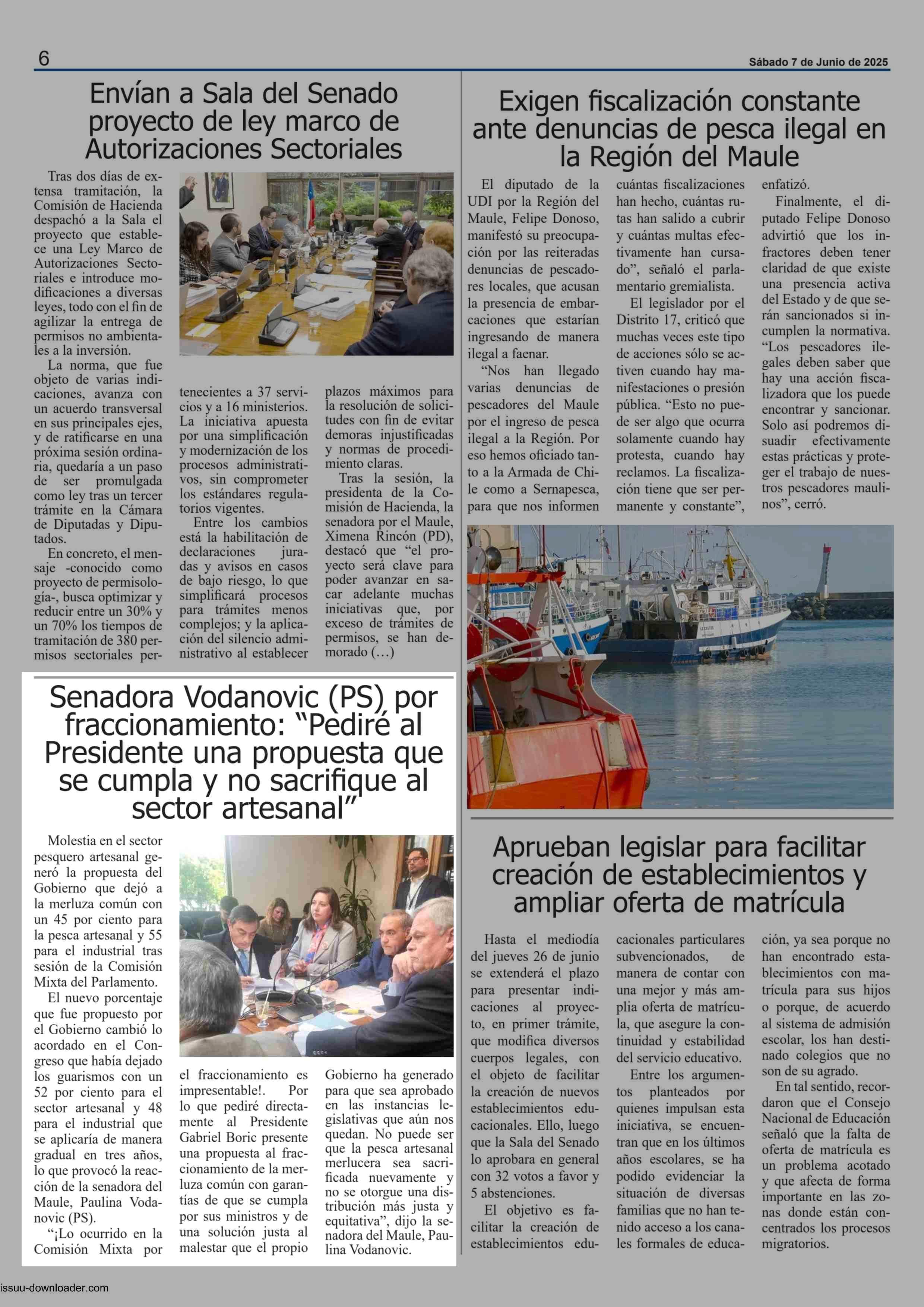 Senadora Vodanovic (PS) por fraccionamiento: *Pediré al Presidente una propuesta que se cumpla y no sacrifique al sector artesanal” 07-06-2025 El Heraldo |