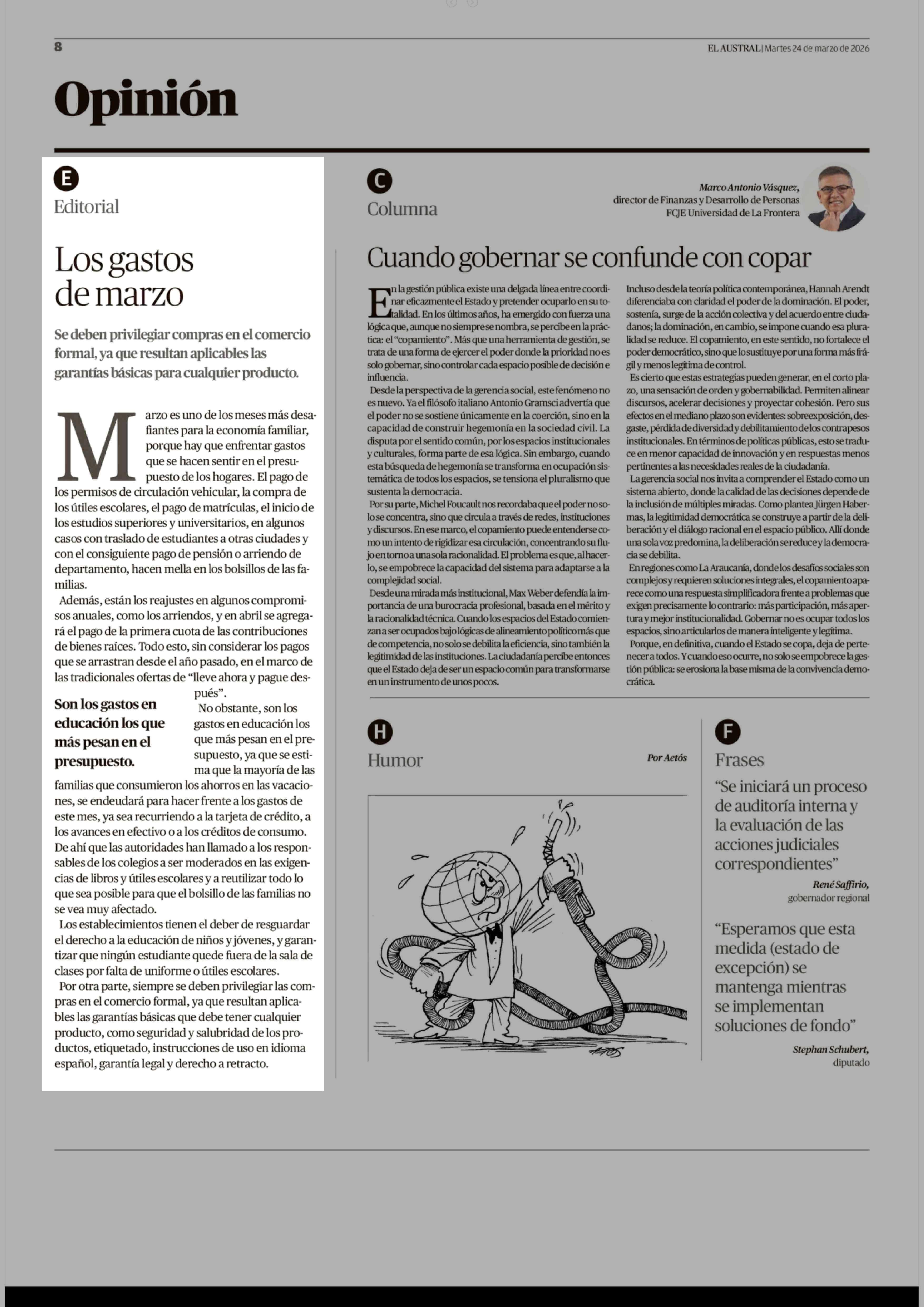 Fecha: 24-03-2026 Sector: Editorial Región: Región de la Araucanía