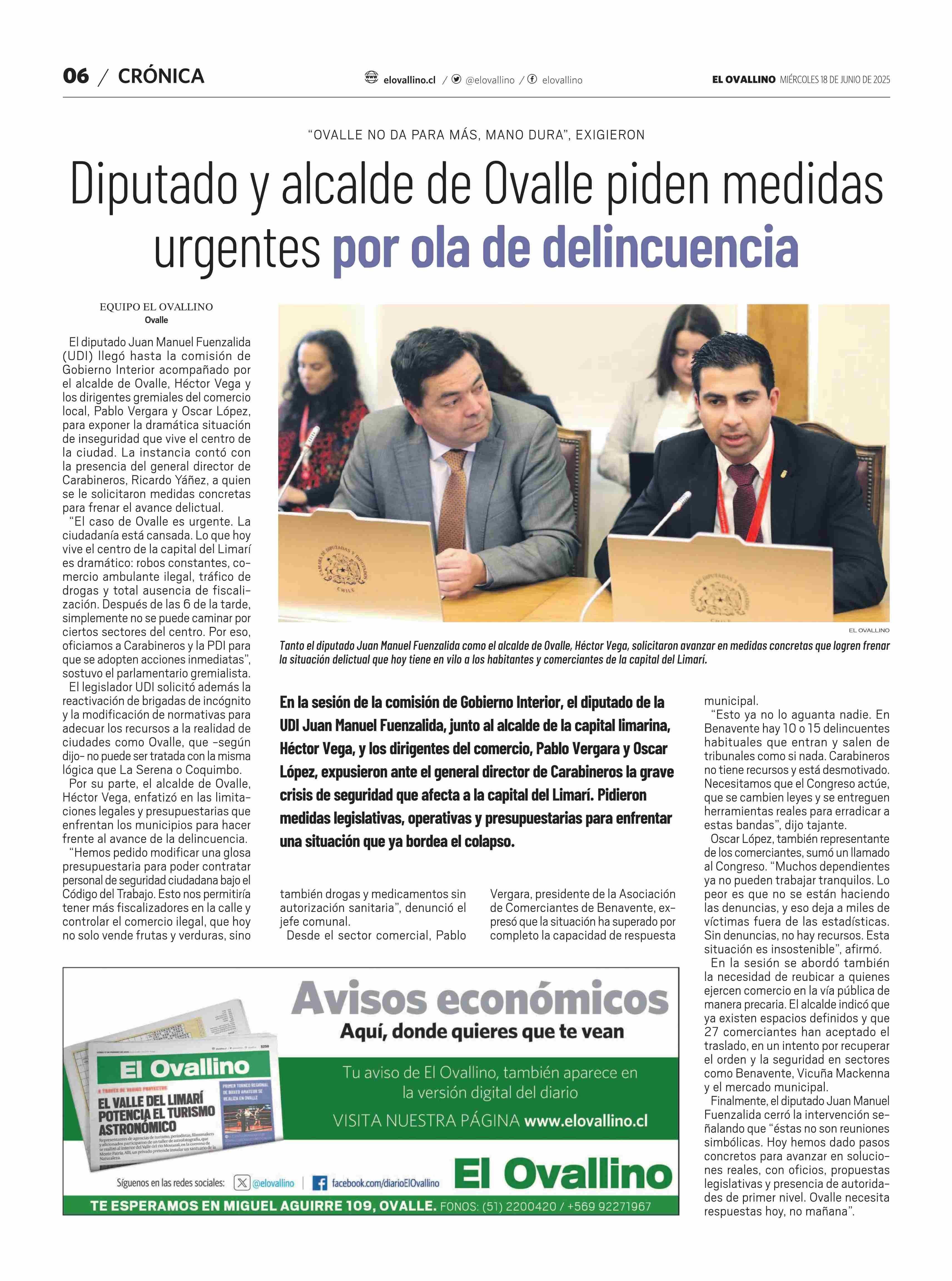 Diputado y alcalde de Ovalle piden medidas urgentes por ola de delincuencia 18-06-2025 El Ovallino |